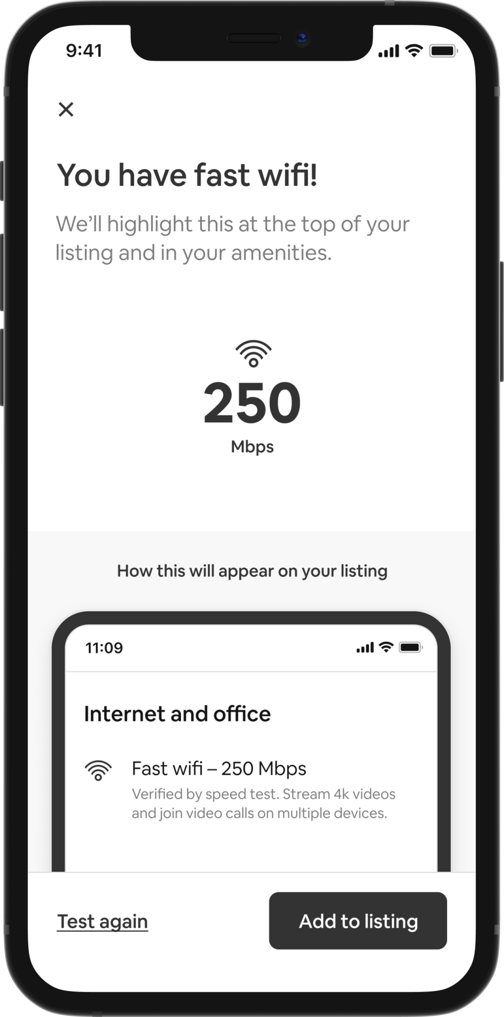 透過全新的網路測速工具,房客可確認房源 Wi-Fi 是否滿足需求。