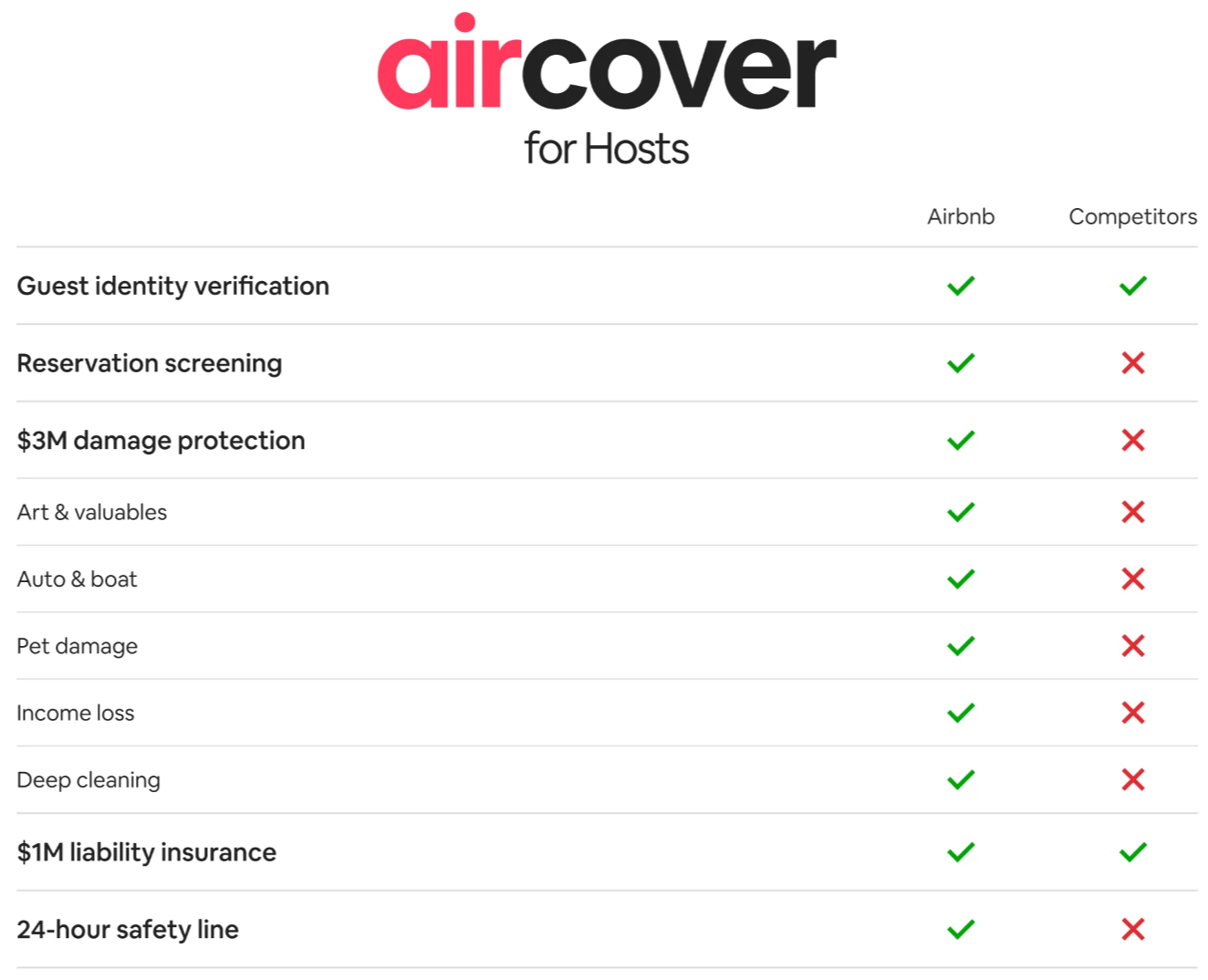 - 與競品形成差異化 → 對比圖清晰展示 Airbnb 的保障覆蓋範圍更全面,有助於市場營銷和品牌背書。