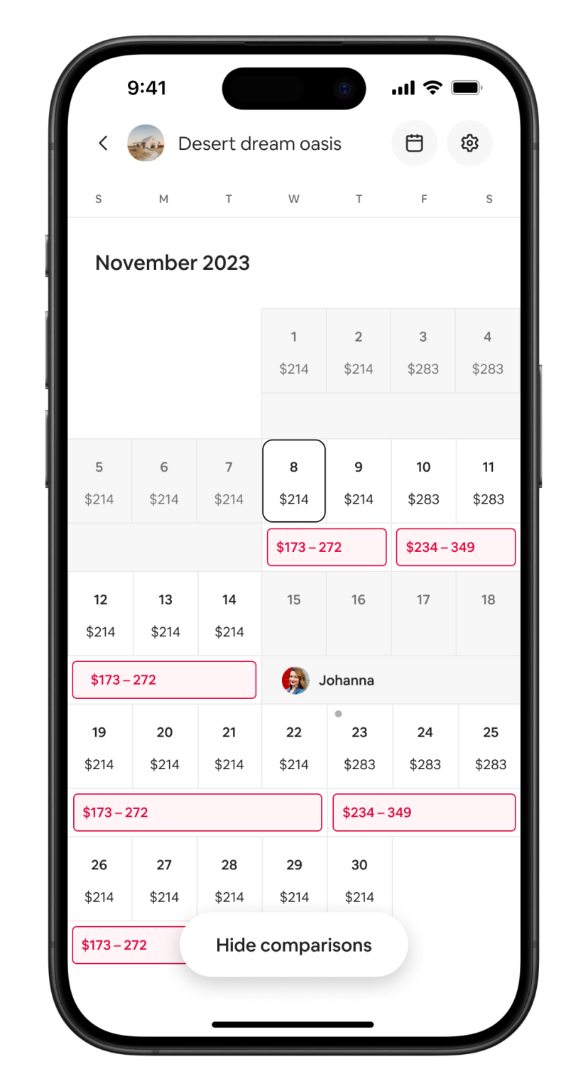 Airbnb 為房東推出了更多實用工具:價格透明化功能讓房東更好理解客人支付的最終費用;全新收益面板幫助房東全面掌握收入情況並生成個性化報表;而價格對比功能則能在日曆中直接顯示本地市場的價格趨勢,便於房東最佳化定價策略。