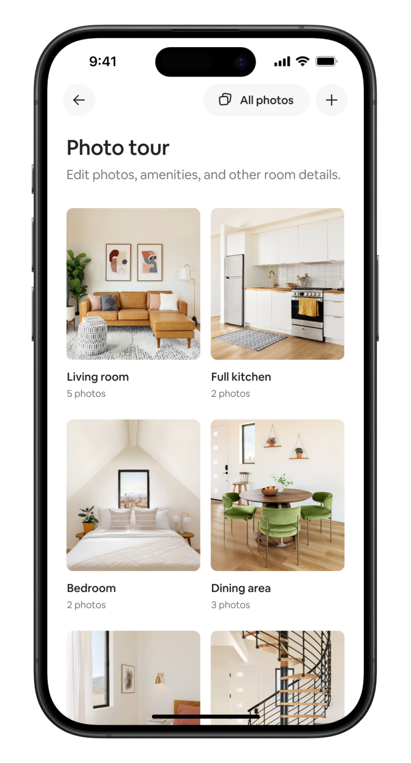 Airbnb 推出了全新的「房源管理」標籤頁,為房東提供更加高效直觀的工具:透過全新編輯器簡化房源細節的錄入和到店指引設定;利用 AI 驅動的「照片導覽」自動識別房間並生成佈局預覽,幫助房客更好理解房源空間;並支援與智慧門鎖連線,為每位客人生成唯一的動態門鎖密碼,實現無接觸、順暢的入住體驗。