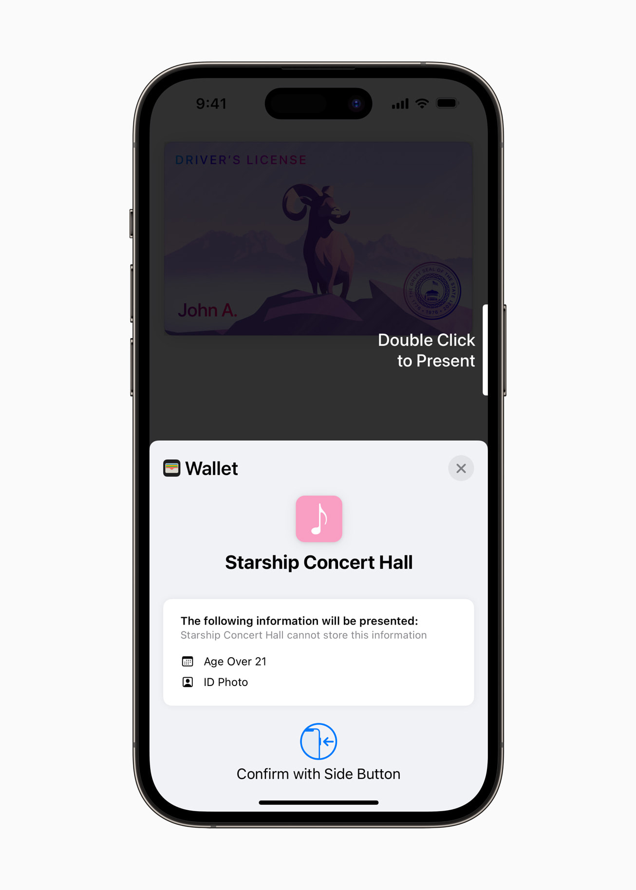 Present an ID to businesses using iPhone and Apple Wallet.使用 iPhone 和 Apple Wallet 向企業出示身份證件。
