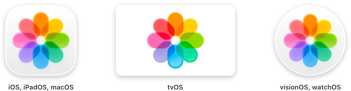 iOS/iPadOS/macOS/watchOS:背景層 + 1~多前景層,支援 Liquid Glass 效果。