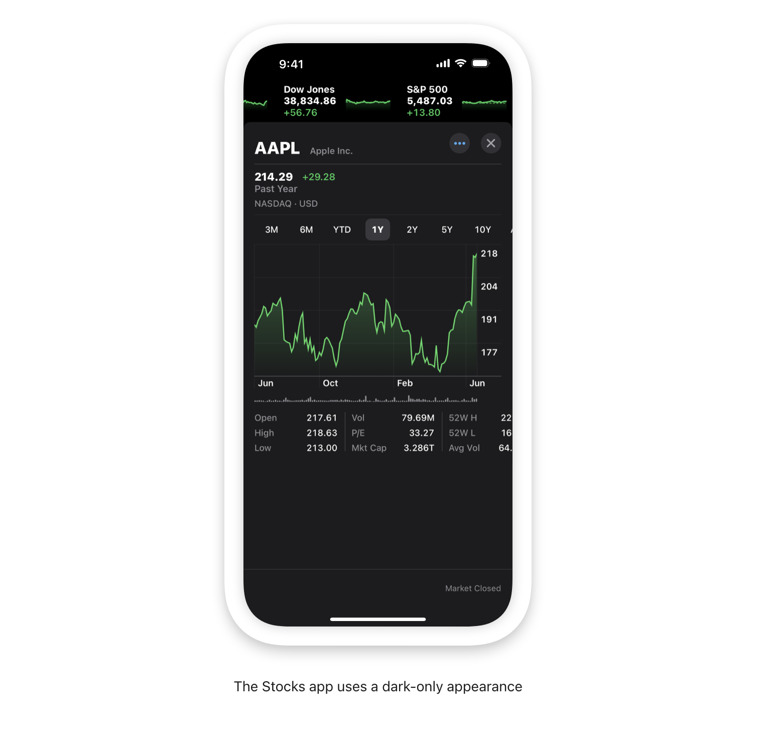 全系統暗黑模式:iOS、iPadOS、macOS和tvOS支援暗黑模式,它使用深色調色盤,適合低光環境,幫助使用者減少眼睛疲勞。使用者通常期望所有應用都支援暗黑模式,並遵守他們的系統外觀偏好。