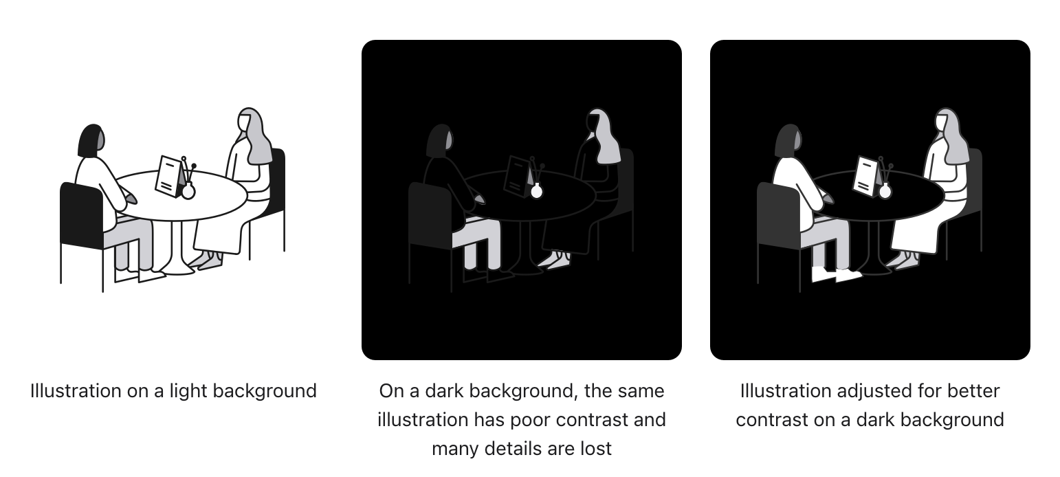 為不同模式設計圖示:在某些情況下,圖示在不同背景下需要調整。例如,黑色圖示在暗背景下可能需要白色邊框以提高可見性。