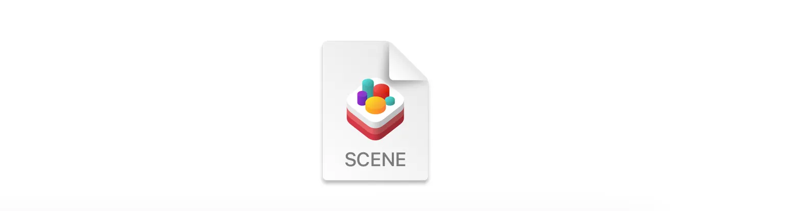 - 文字說明:如果副檔名難以理解,系統允許使用更易懂的文字代替副檔名,確保在小尺寸下也能清晰顯示。圖中展示了SceneKit場景檔案使用“SCENE”代替副檔名“scn”。