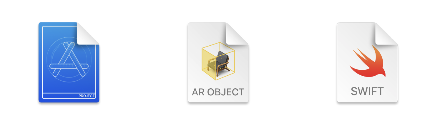 自定義文件圖示:應用程式可以為處理的不同檔案型別設計一套文件圖示,Xcode為專案檔案、AR物件和Swift程式碼檔案都建立了不同的自定義圖示。