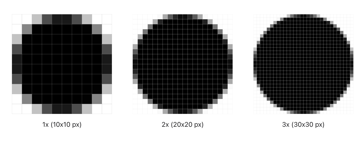 建議: 優先設計 @1x 影象,向上縮放生成高解析度版本;向量圖應儘量讓控制點在整數值上對齊,以保證多倍率下影象清晰對齊。