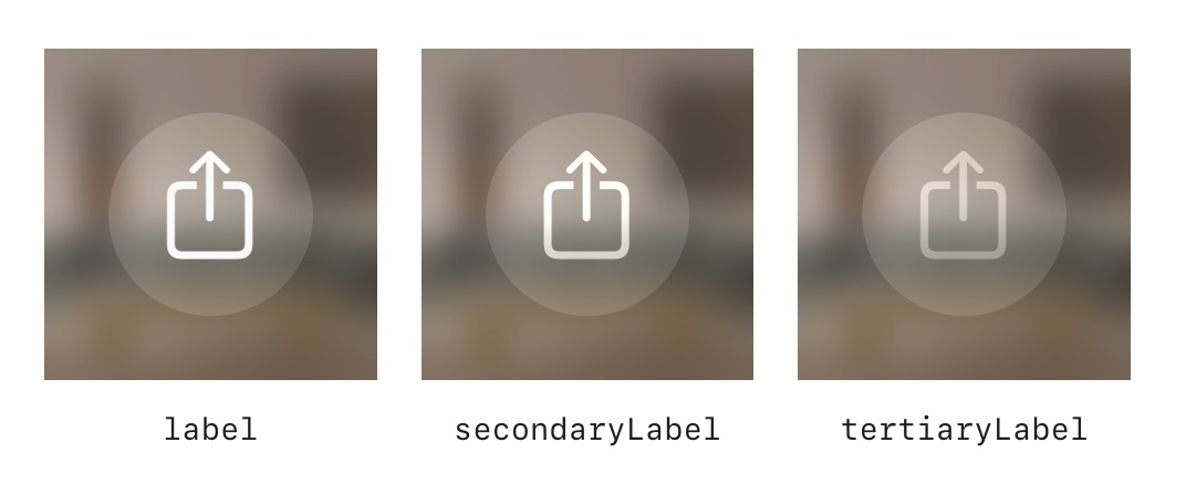 label(預設)、secondaryLabel、tertiaryLabel、quaternaryLabel- 避免在 ultraThin 和 thin 材質上使用