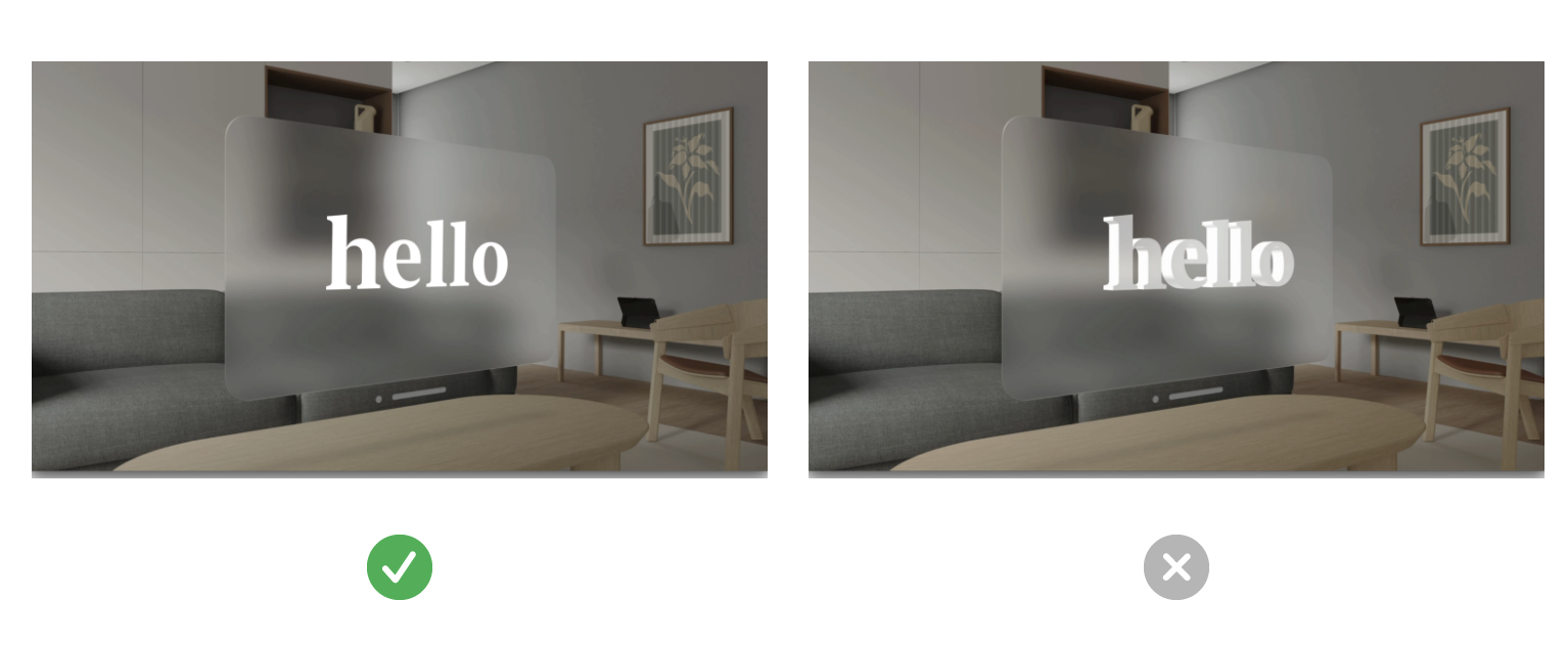 優先使用二維文字:在視覺上帶有深度的文字更難以閱讀。如果需要使用者閱讀並理解內容,建議使用沒有或很少視覺深度的文字。