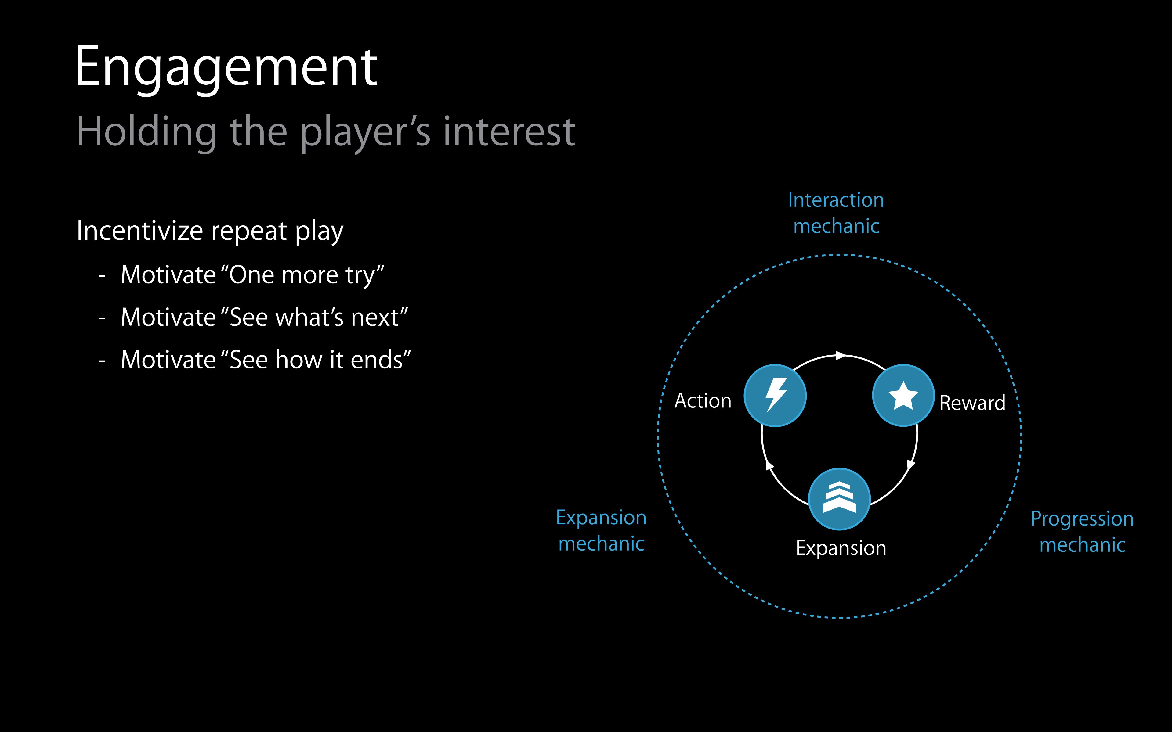 透過設計挑戰、解鎖新內容、逐步揭示故事情節等方式,激勵玩家不斷回到遊戲中。