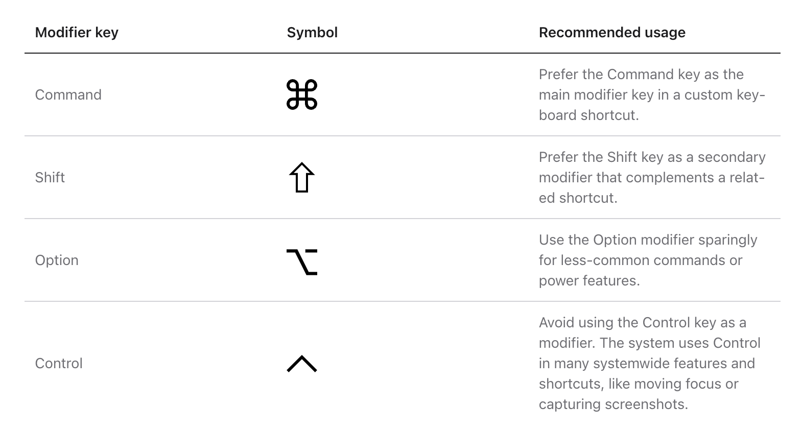 - 避免在已有快捷鍵基礎上新增不相關功能(如用 Shift–Command–Z 表示非重做操作);
