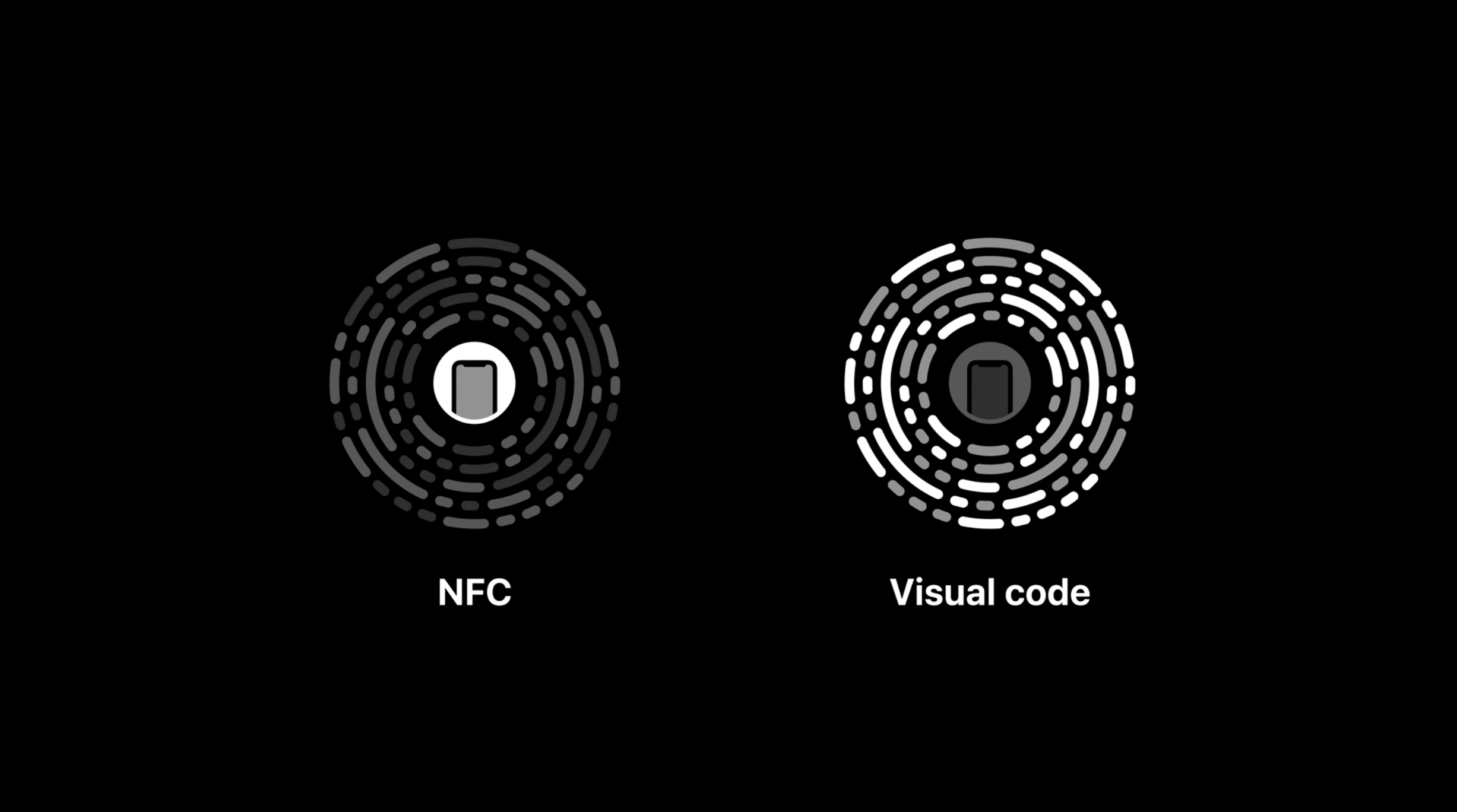A App Clip程式碼:專為App Clips設計,外觀一致,便於識別。中央為NFC標籤,外圍為可視程式碼,適合不同距離掃描。