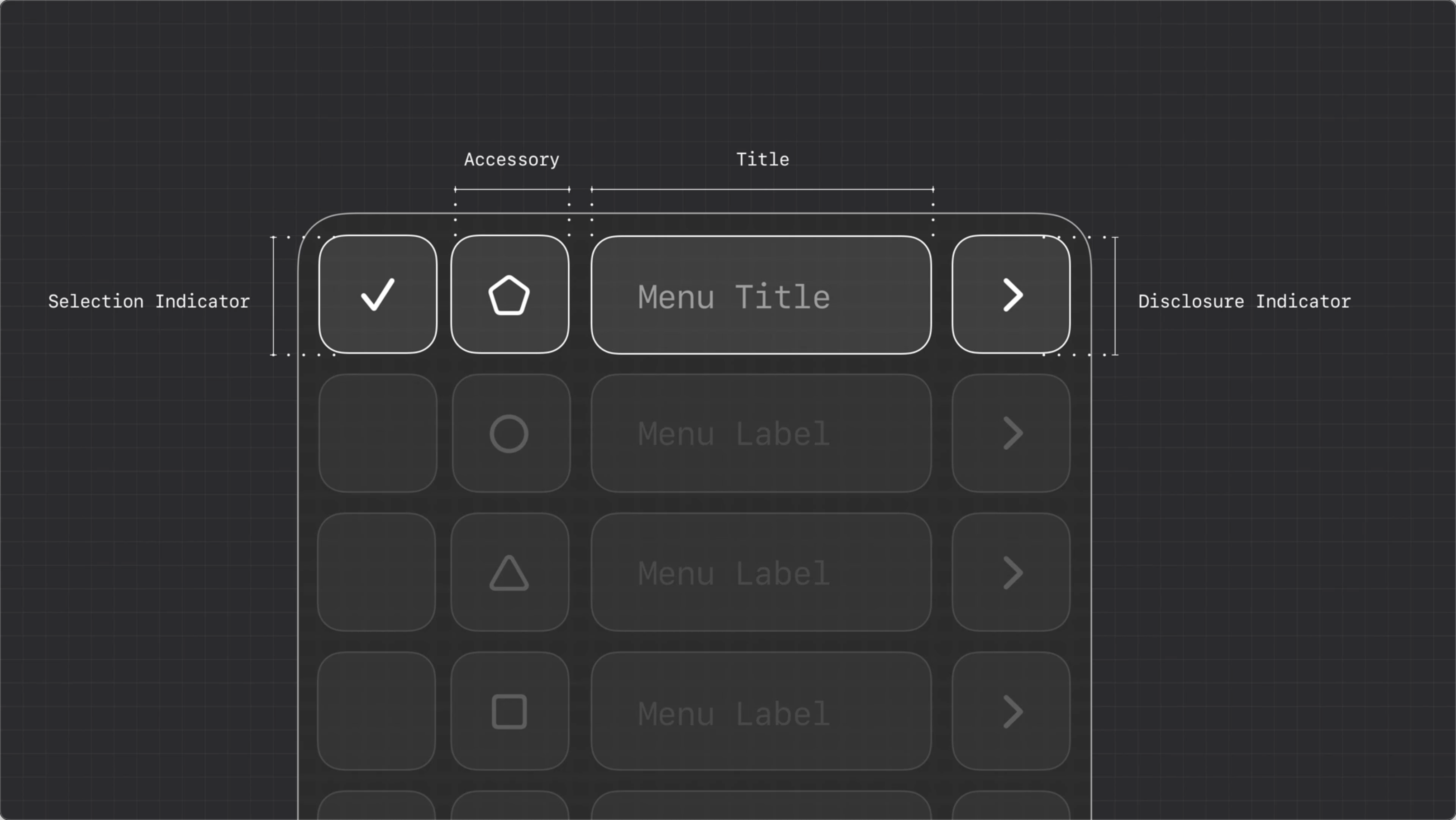 macOS 上的彈出選單(popup menu)和 iOS 上的上下文選單(context menu)外觀雖然不同,但它們都具備相同的組成部分:選中指示器、圖示、文字標籤和附加項,保持結構一致性。即便結構因平臺而有所調整,統一的互動行為仍能彌補這些差異,使體驗保持一致。