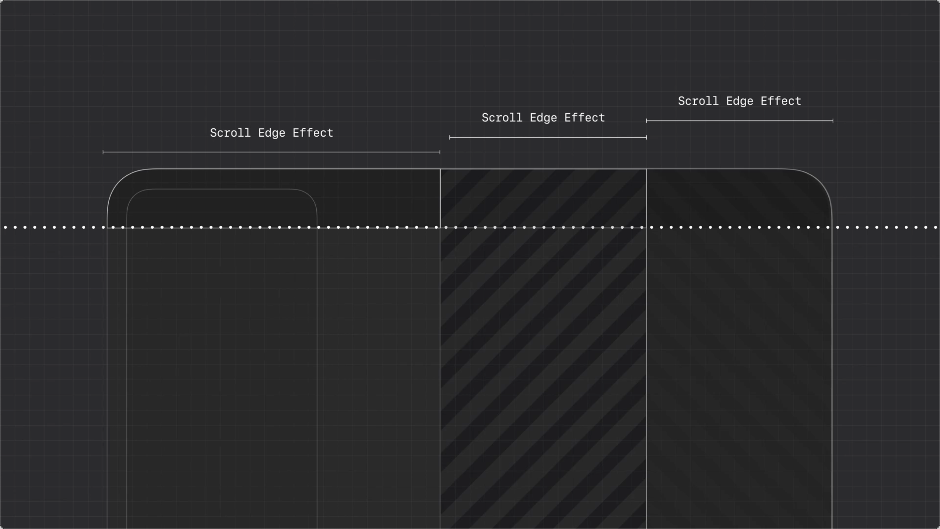 系統中有兩種滾動邊緣樣式:柔和(soft)和 強烈(hard),適應不同平臺和介面需求。不要混用或疊加這兩種效果,這樣會造成視覺衝突,降低介面的一致性和清晰度。每個檢視只應用一種滾動邊緣效果,以避免層級混亂,確保介面一致性。