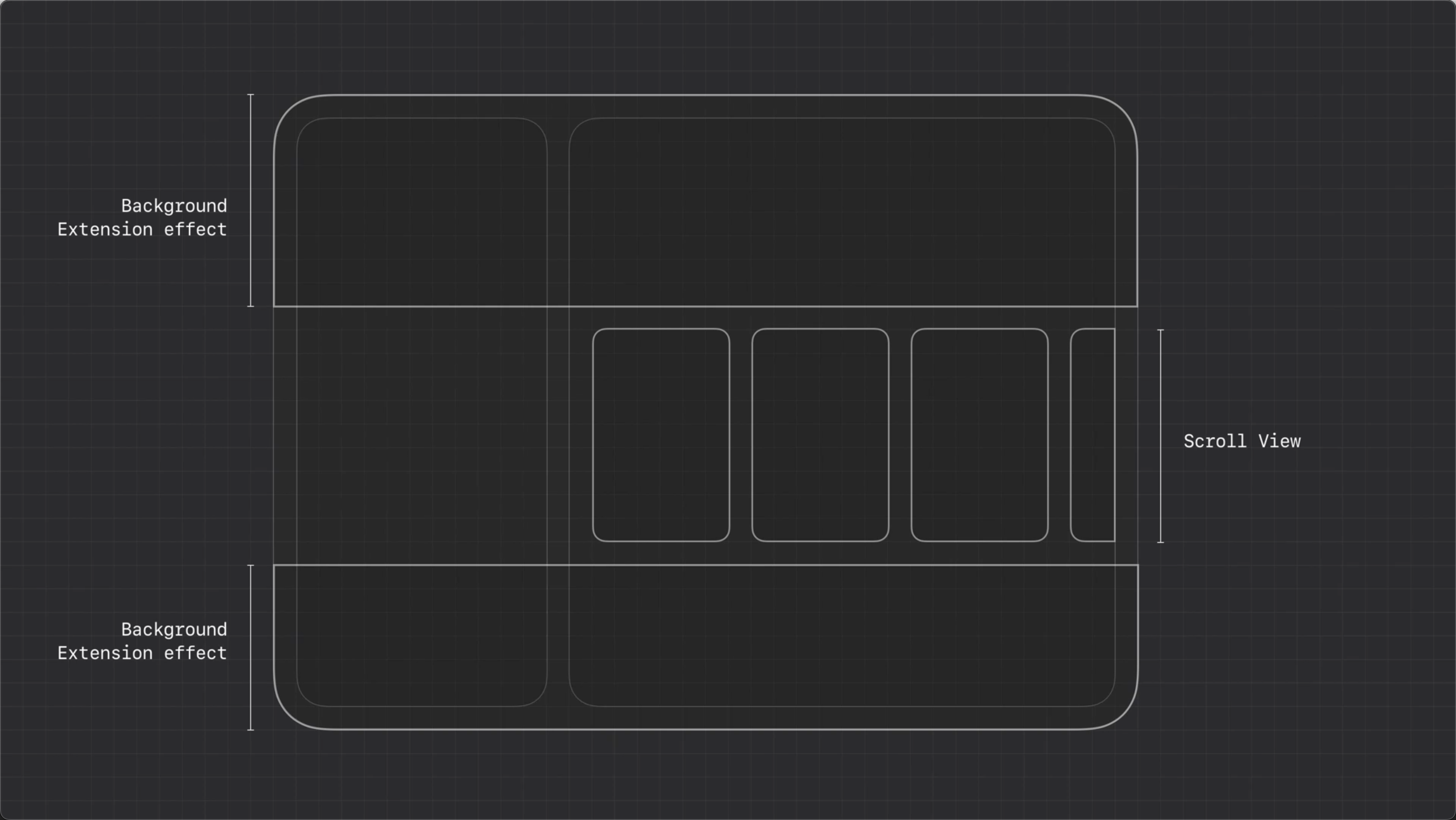 在這個示例中,頂部和底部區域啟用了背景延伸,而中間的滾動檢視則保持獨立未擴充套件,形成清晰的視覺層級與結構對比。