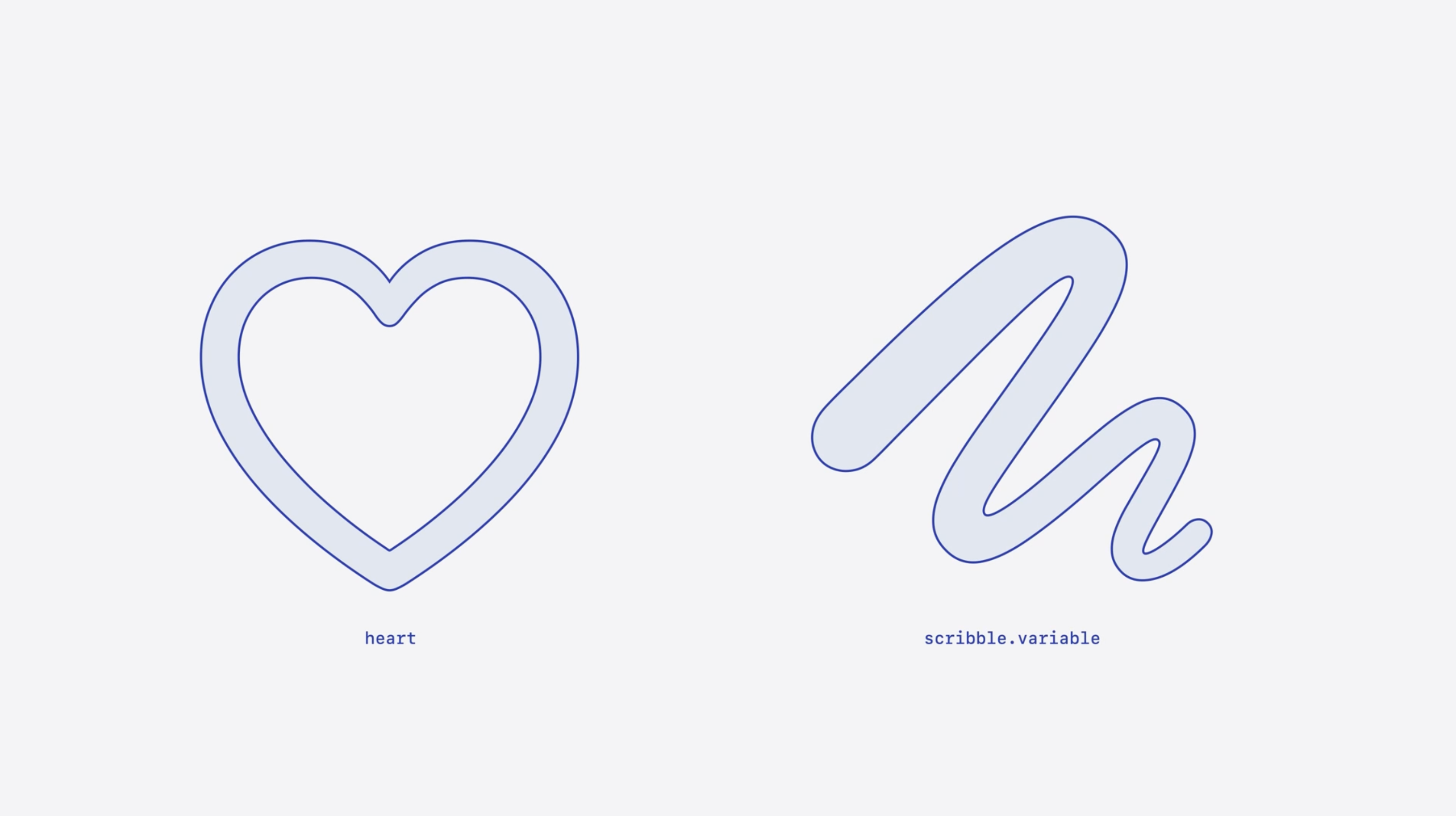 圖示是如何被繪製的?就像這個心形,其實是用兩條線畫出來的,不是一整塊。還有像那種線條粗細會變的圖示,不能直接畫個邊就行,要更細緻地處理路徑。