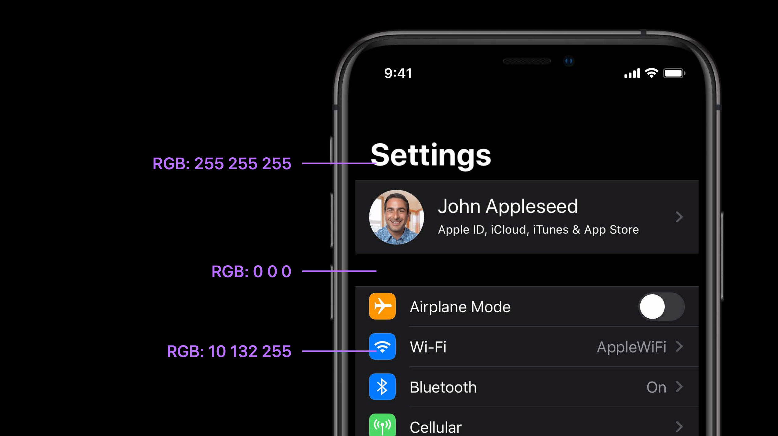 iOS 用"語義顏色"管理顏色,顏色名稱直接表明用途。