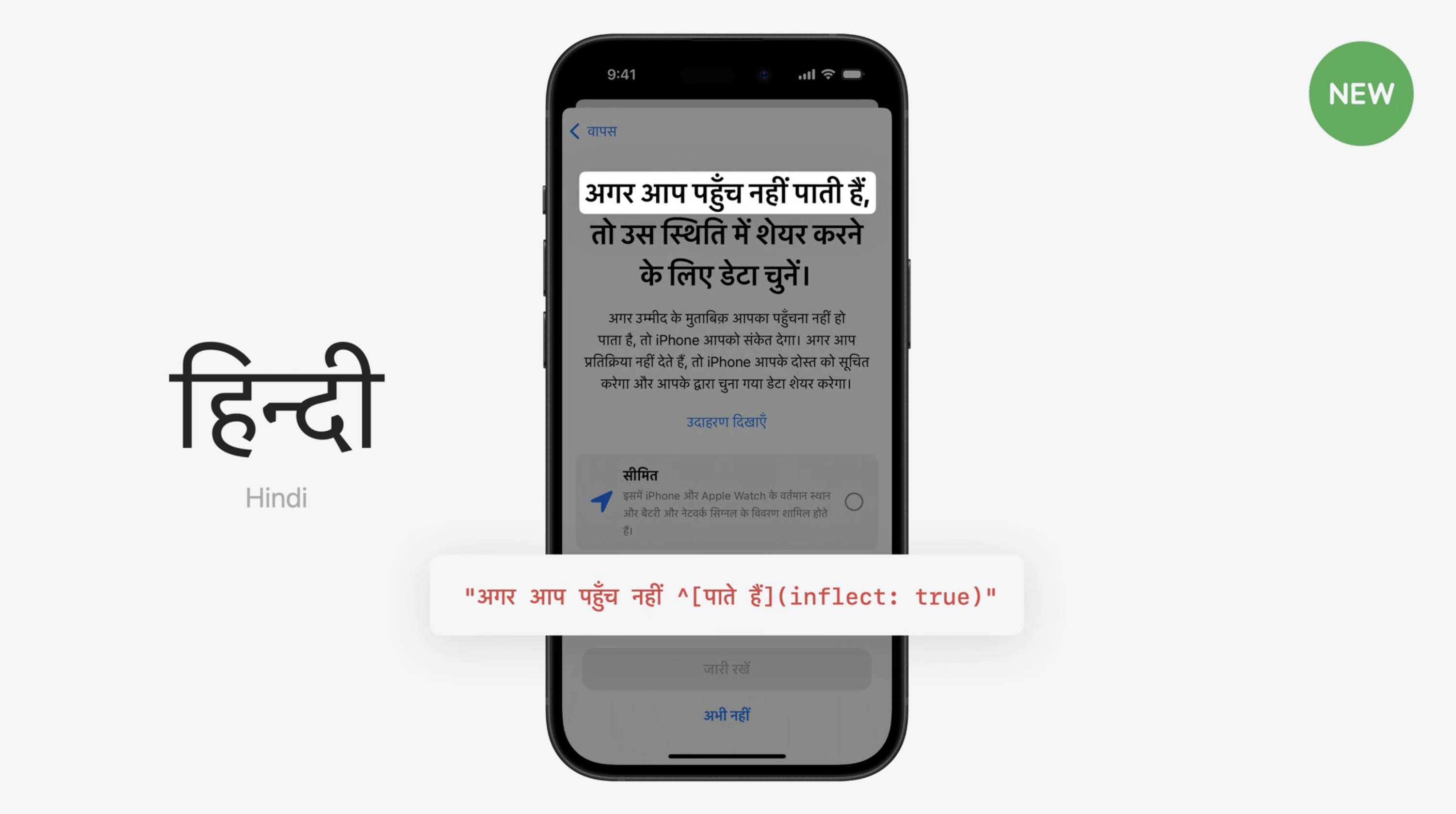 蘋果運用NSAttributedString技術,將以前改變字重的方式改為了用顏色來高亮輸入的內容,而不是切換字型。解決了印地語字元連線被破壞的問題。