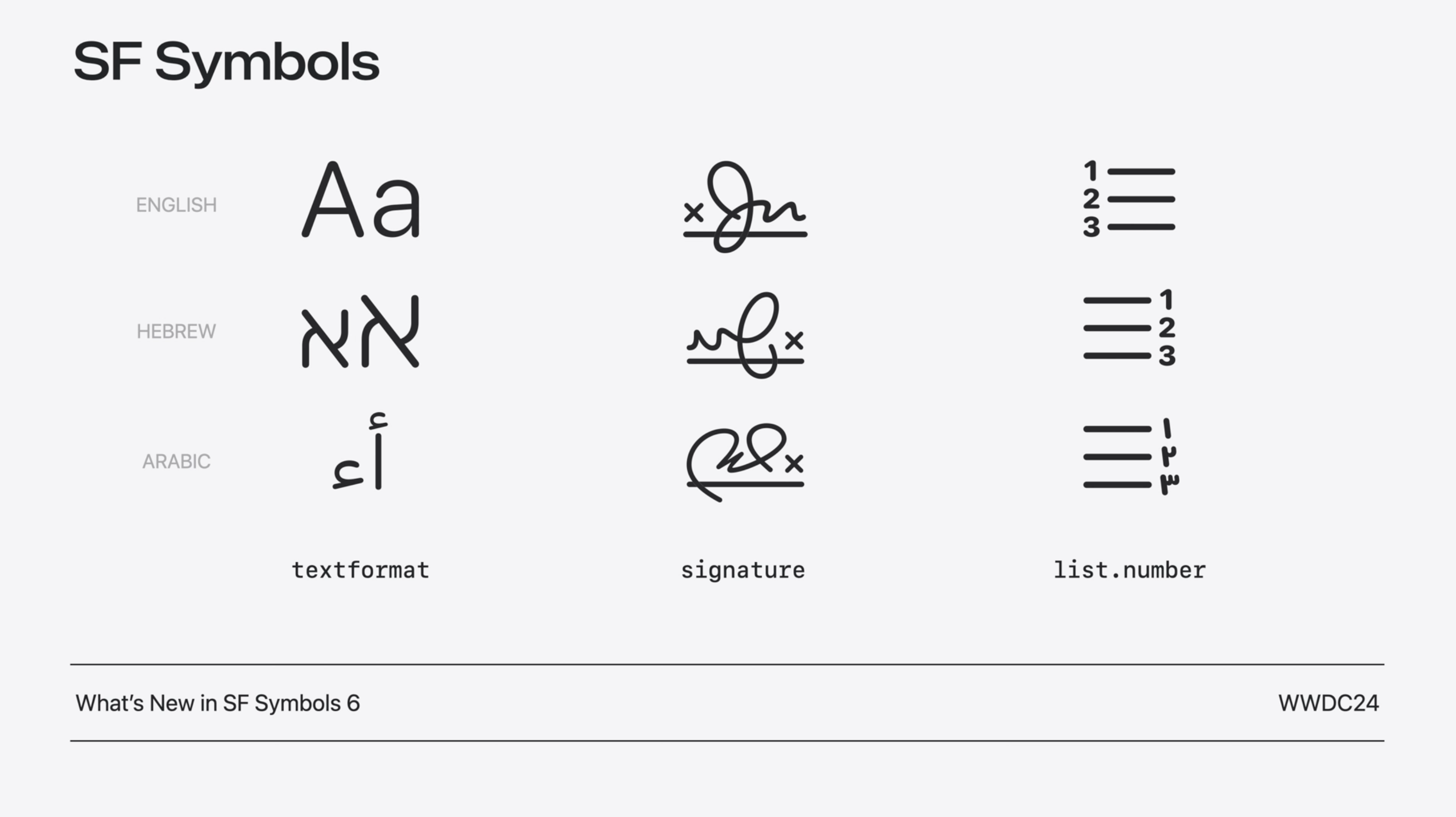 signature 簽名符號,英語的簽名字母類似 “Jn”,而阿拉伯語、希伯來語採用更接近本土的書寫風格。
