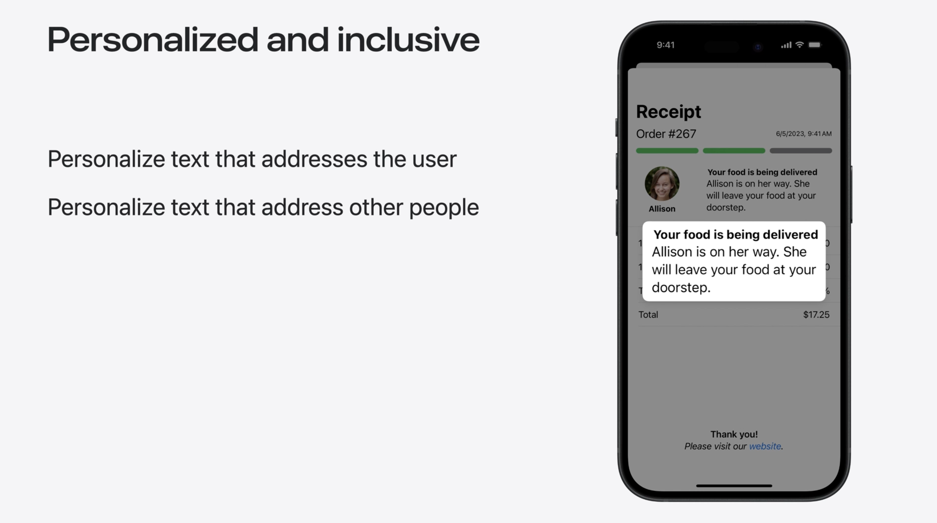 蘋果研發的自動語法匹配引擎技術可以根據使用者的語言和地區設定,更自然地稱呼他們!