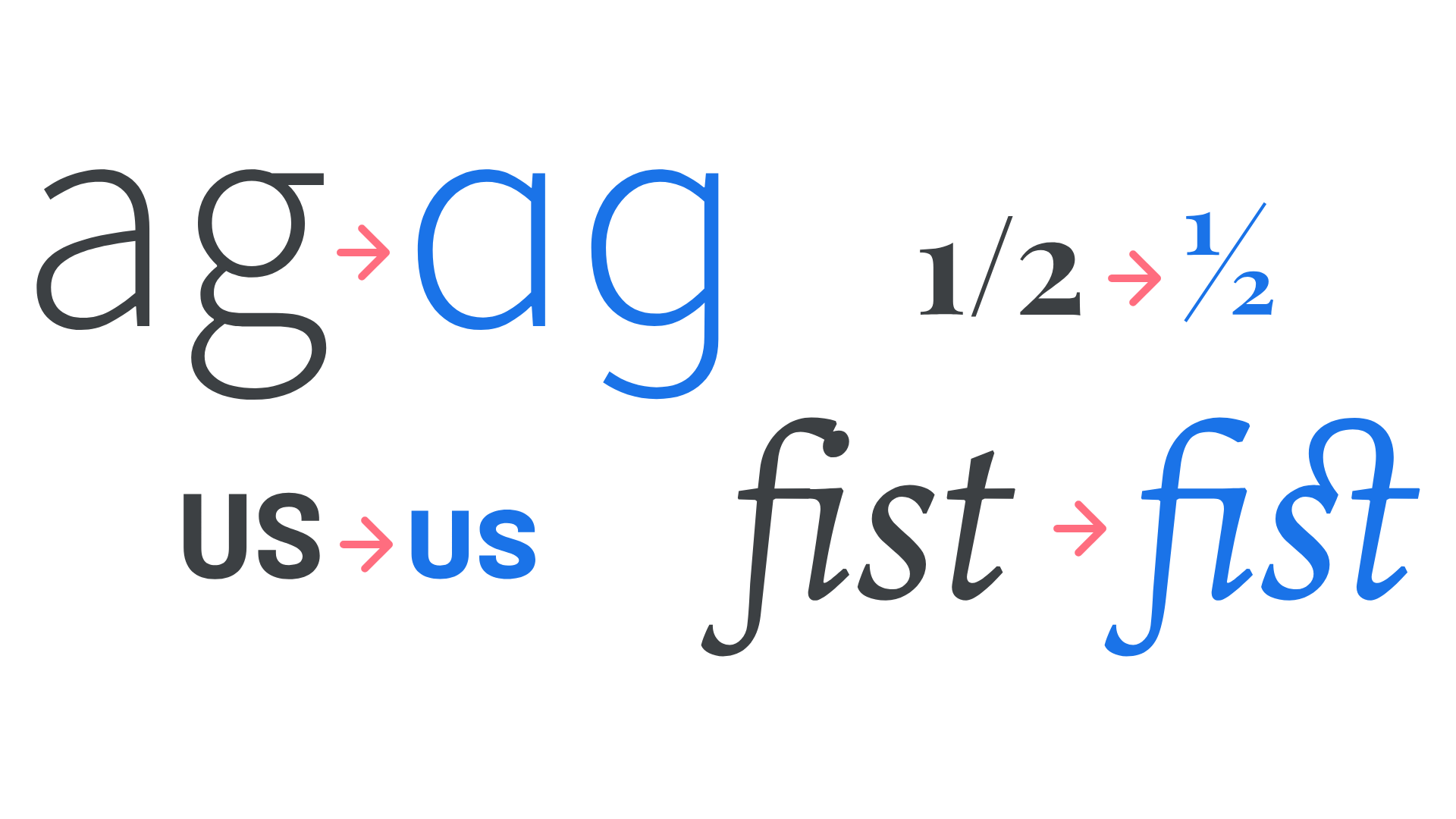 現代字型都有一個叫OpenType的技術,它能讓字型變得更好用。比如說: