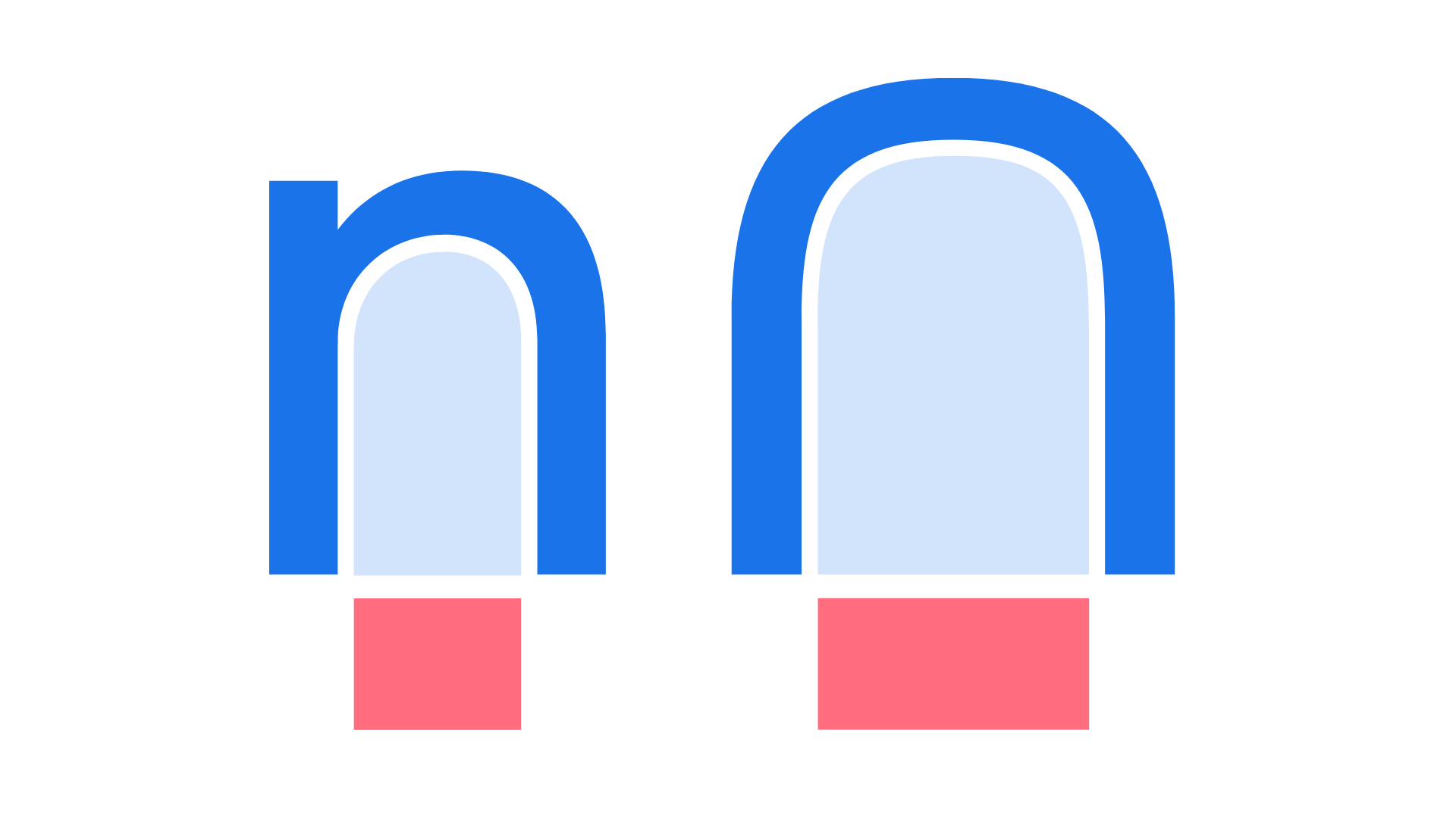 中線幫助確定尾音字元的理想大小。雖然這些符號沒有固定的高度規定,但它們通常應該按照中線決定的比例設計,這樣才能在文字中更容易被辨認,讓讀者更快地識別單詞。