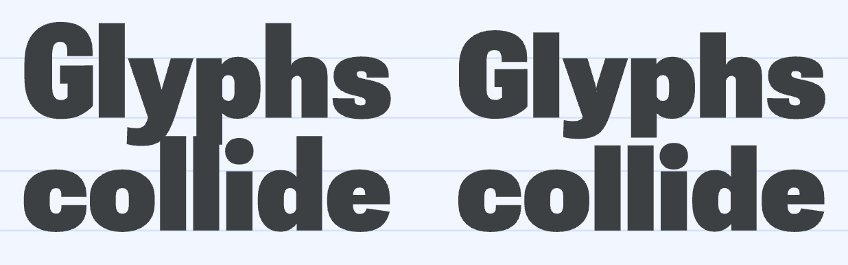 字型的上延和下延部分(比如字母 h 的上部和 g 的下部)會影響行間距。這些延伸部分越長,為了避免文字重疊,需要的行間距就越大。