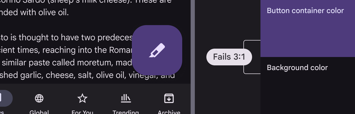 浮動操作按鈕 (FAB, Floating Action Button) 由於本身突出,不需要滿足 3:1 的對比度標準。
