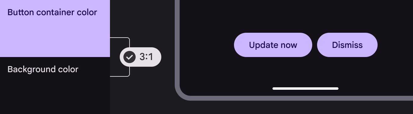 在 多個元件組合 (Clustered Components) 時,每個元件 都需要達到 3:1 的對比度,以確保清晰度。低對比度的按鈕在 UI 中難以區分,而高對比度的按鈕則能夠更清晰地呈現互動邏輯。