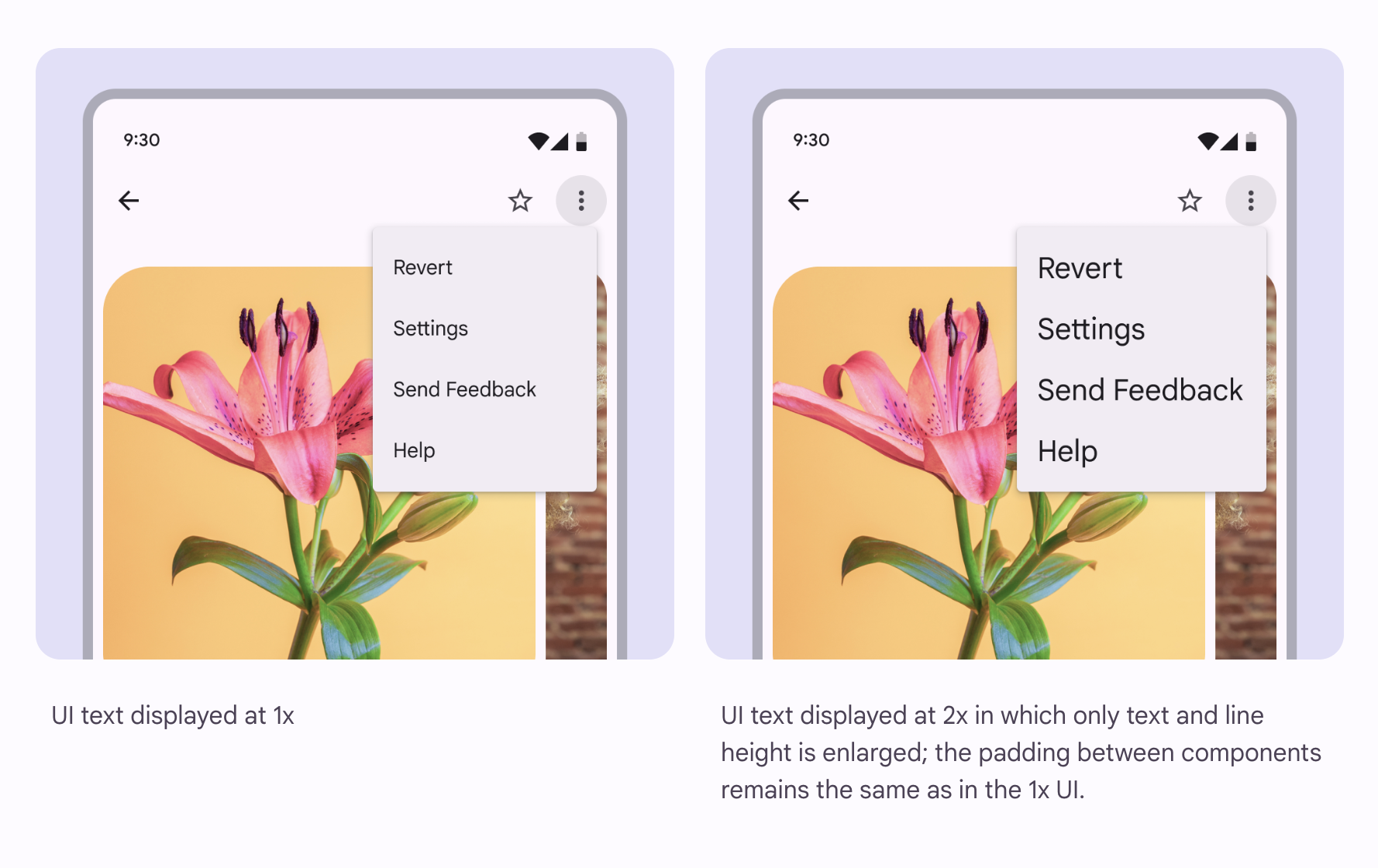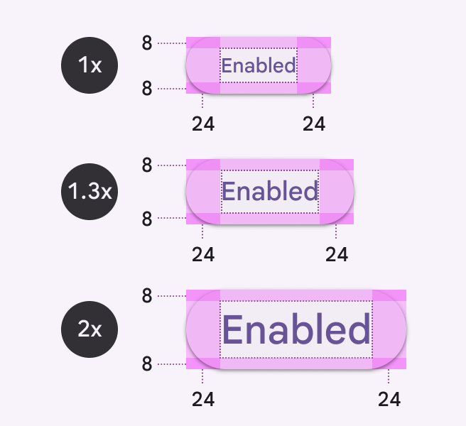 3 不包含文字的元件,如進度指示器、核取方塊或單選按鈕,不受文字大小調整的影響。如果縮放文字時,按鈕內的齒輪圖示也一起放大了,這樣會破壞 UI 設計的一致性