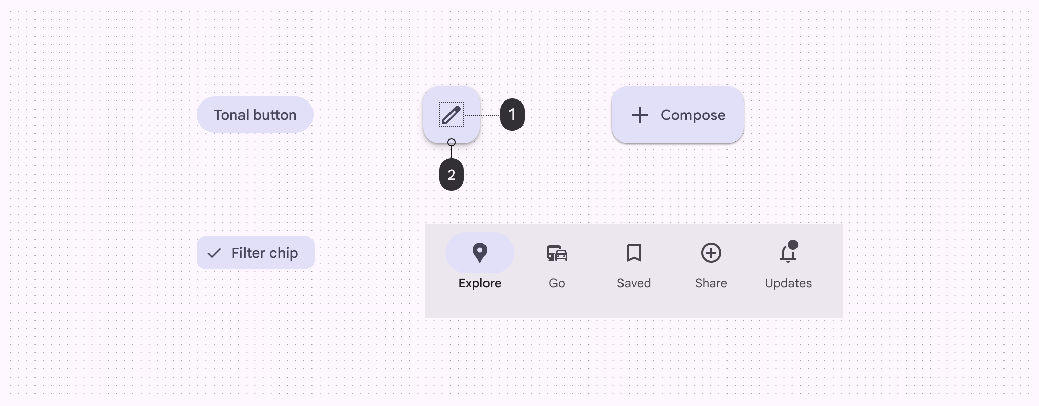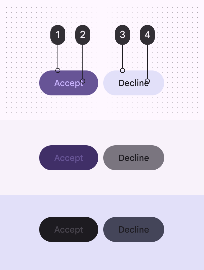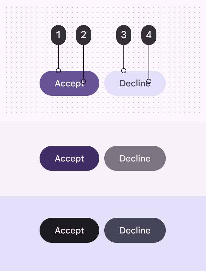 - Inverse primary:用於反向背景上的互動元素,如反向表面上的按鈕