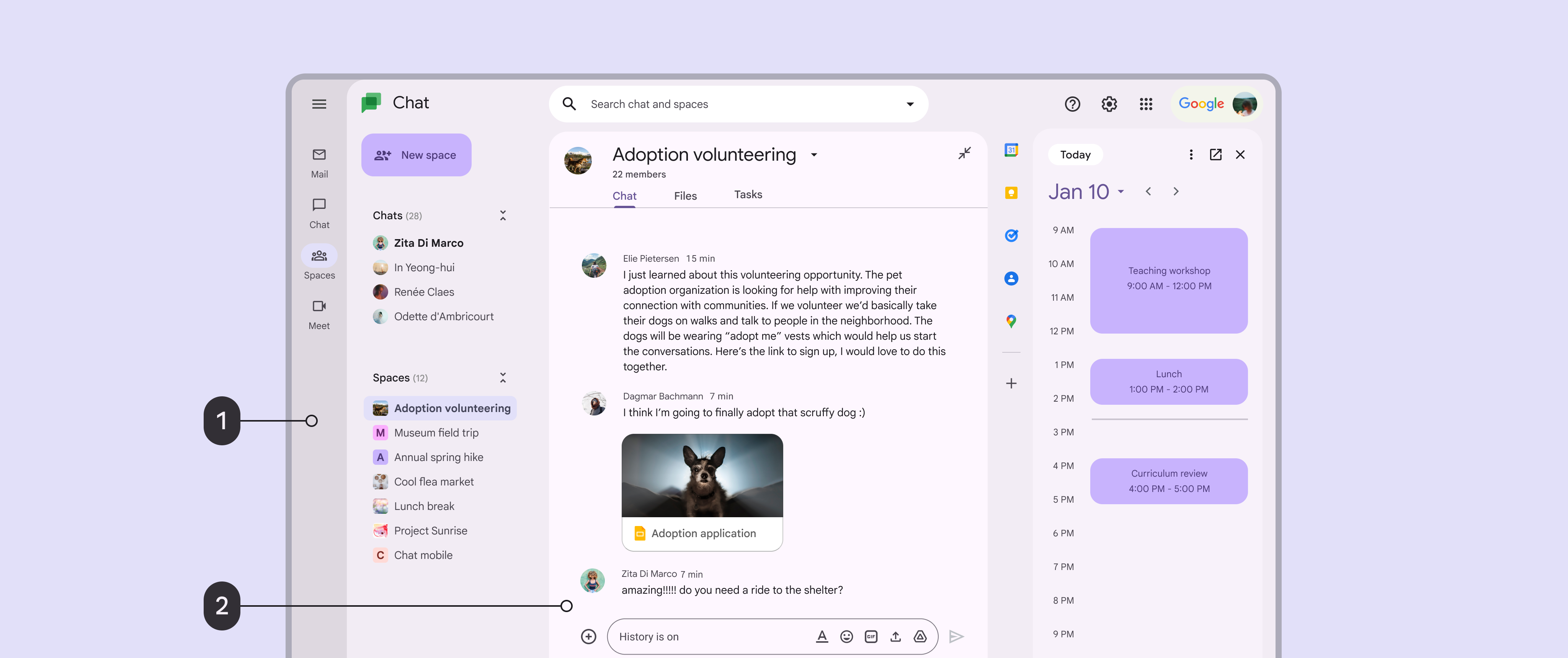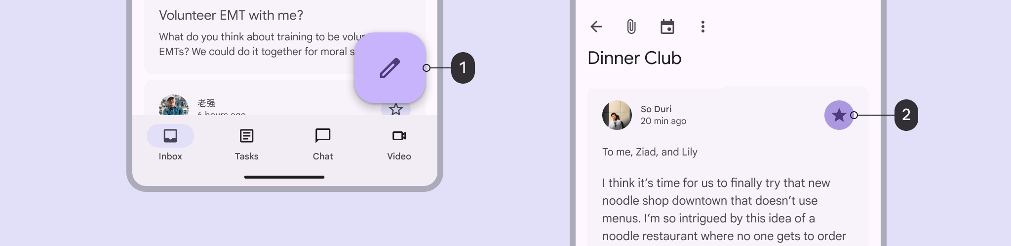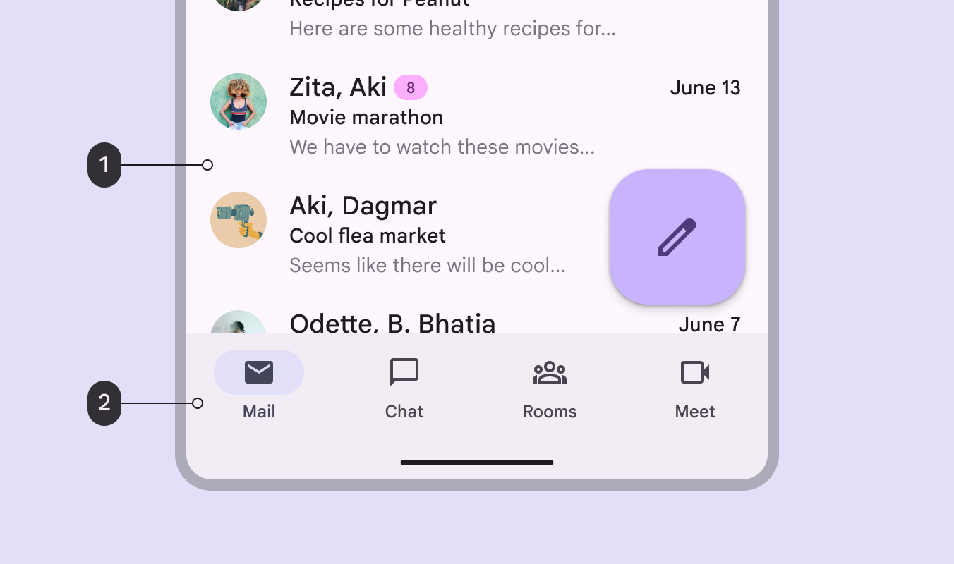 導航欄使用 Surface Dim 背景。聊天視窗使用 Surface Bright 背景。