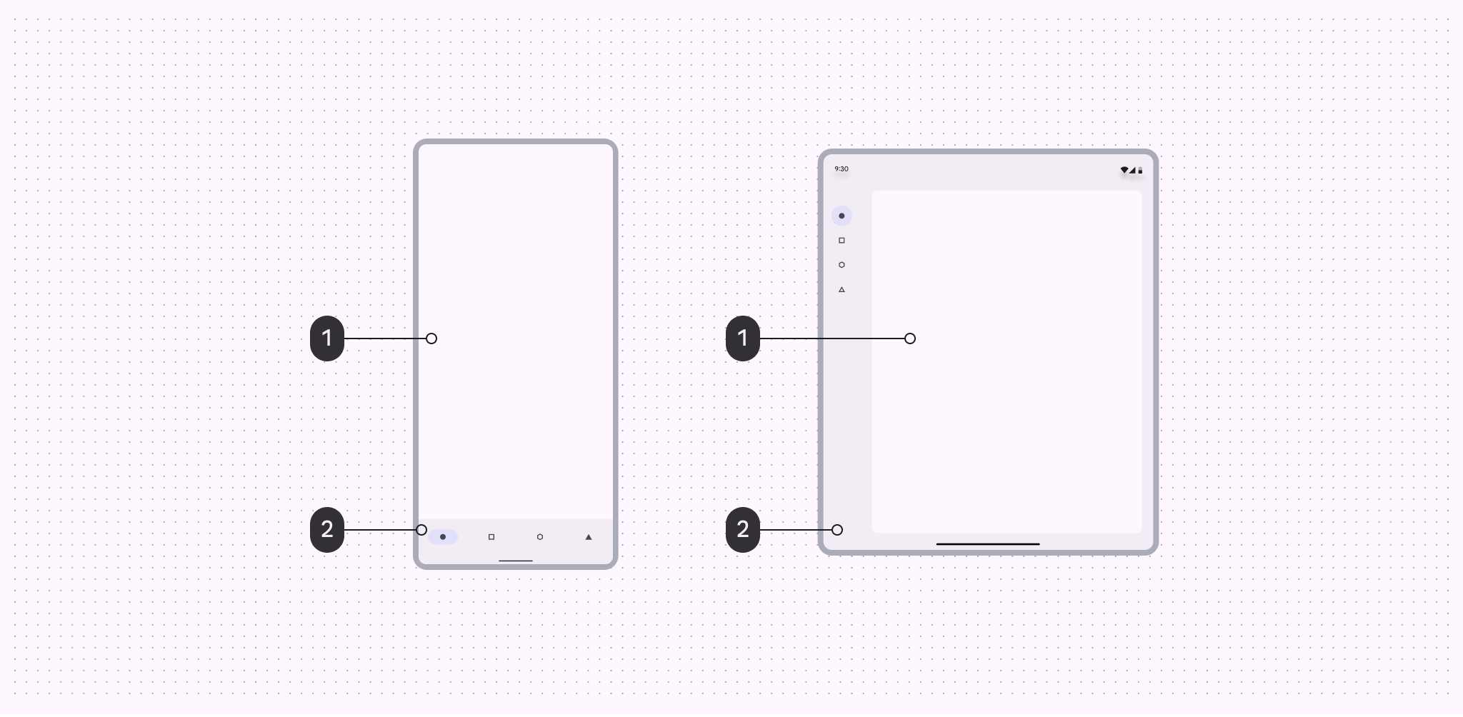 根據必要的層次結構、功能區域和設計邏輯,只要顏色應用保持一致,你可以在較大的視窗類尺寸中使用附加的表面顏色。