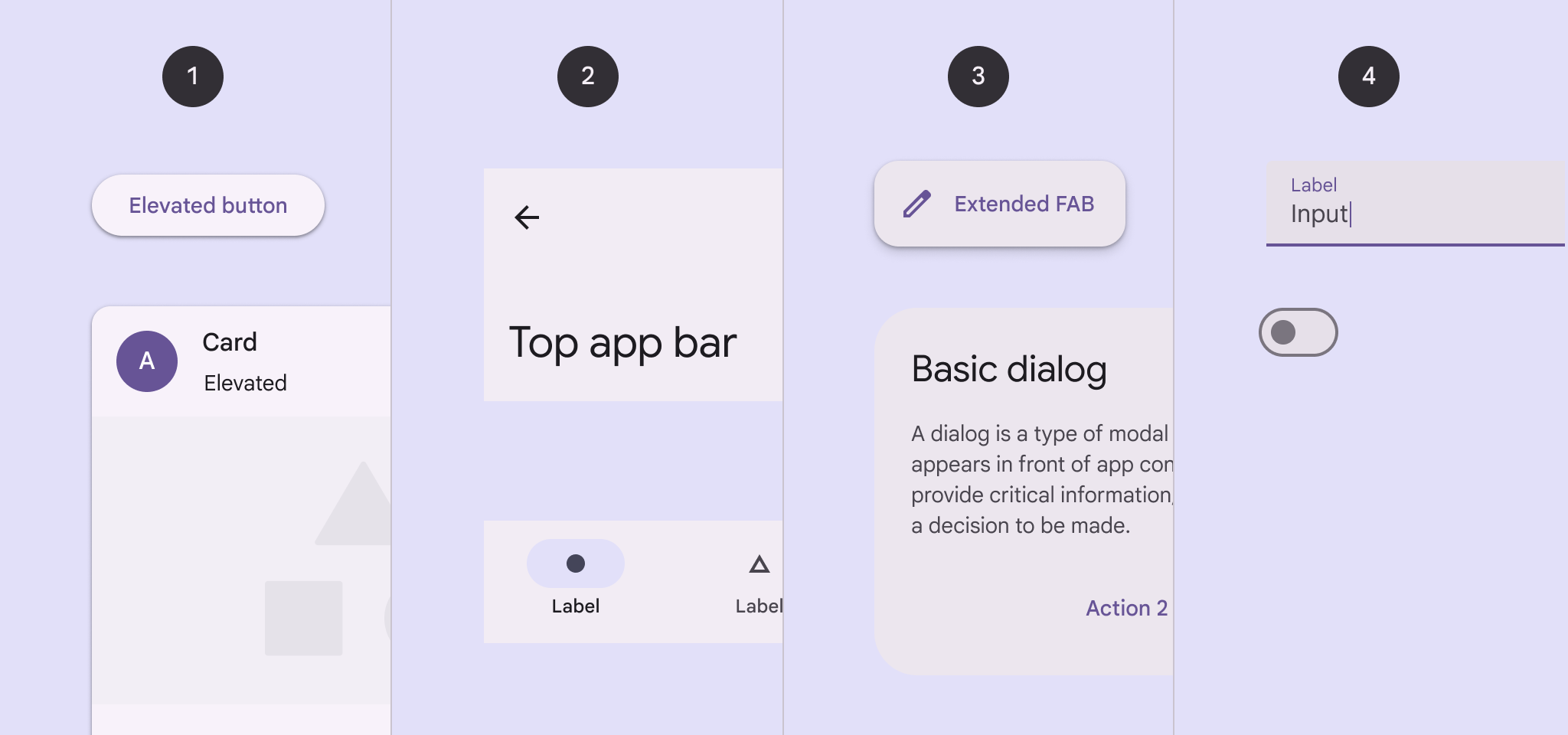 - On Surface Variant(表面變體前景色):低強調的前景色,用於次要內容和輔助性資訊。