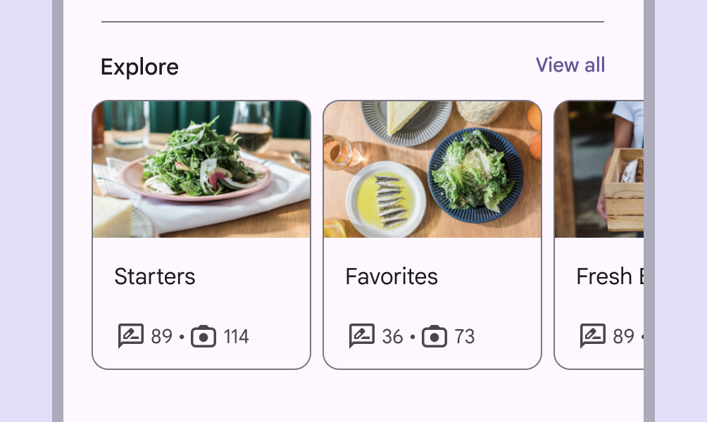 使用表面角色來設定更中性的背景,併為卡片、表單和對話方塊等元件設定容器顏色。