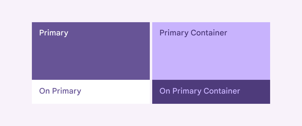 - Primary(主色):用於介面中強調內容的填充色、文字和圖示,通常與表面色(surface)形成強烈對比。