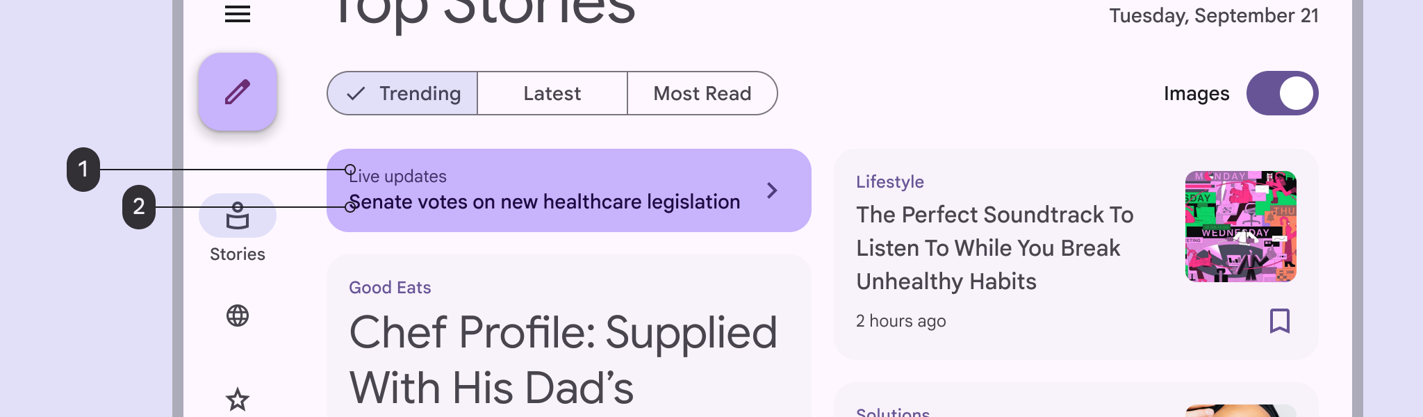 使用次要角色來表示使用者介面中不太突出的元件,比如篩選標籤。