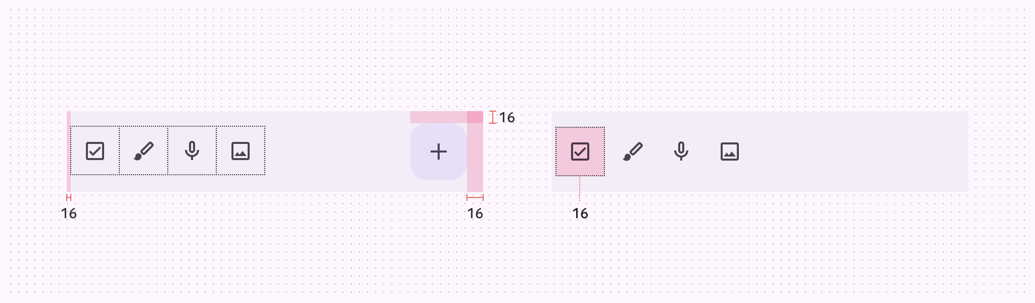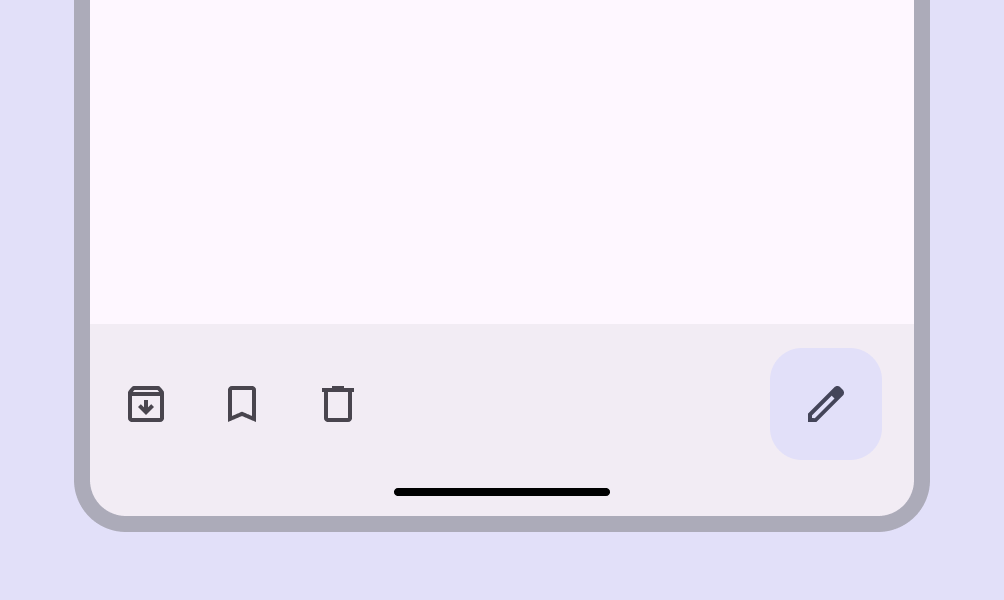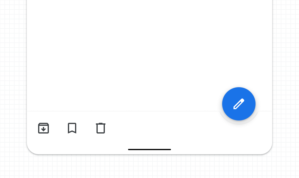底部應用欄是一個顯示在手機和平板螢幕底部的工具欄。它主要用來放置導航按鈕和重要功能按鈕。主要包括普通圖示按鈕和一個特殊的懸浮按鈕(FAB)。