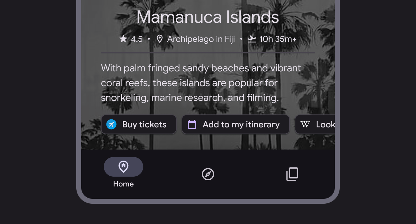 輔助元件會自動出現在頁面上主要內容的下面,通常是在卡片底部或固定在螢幕底部。