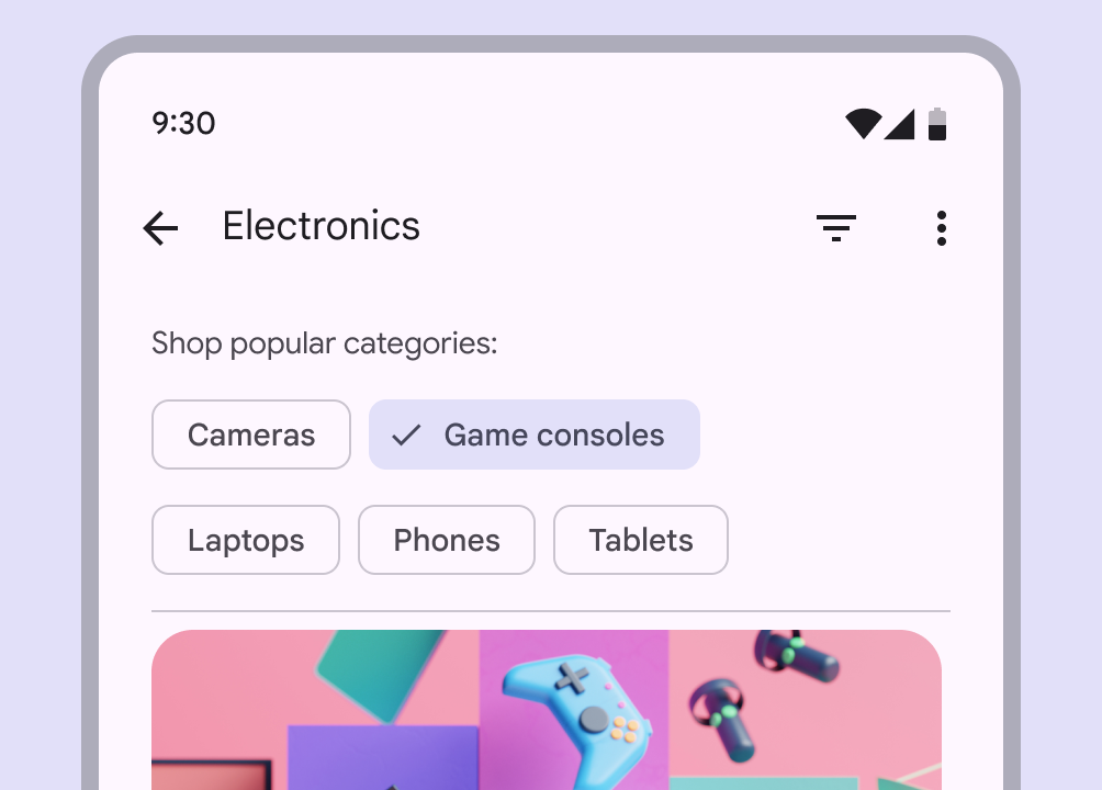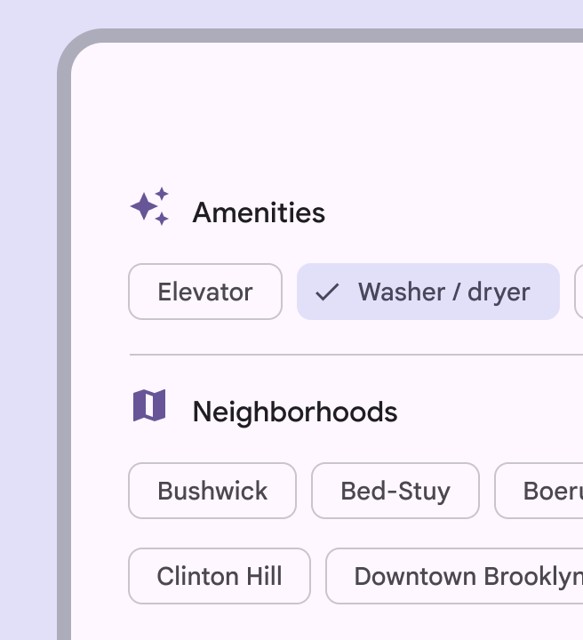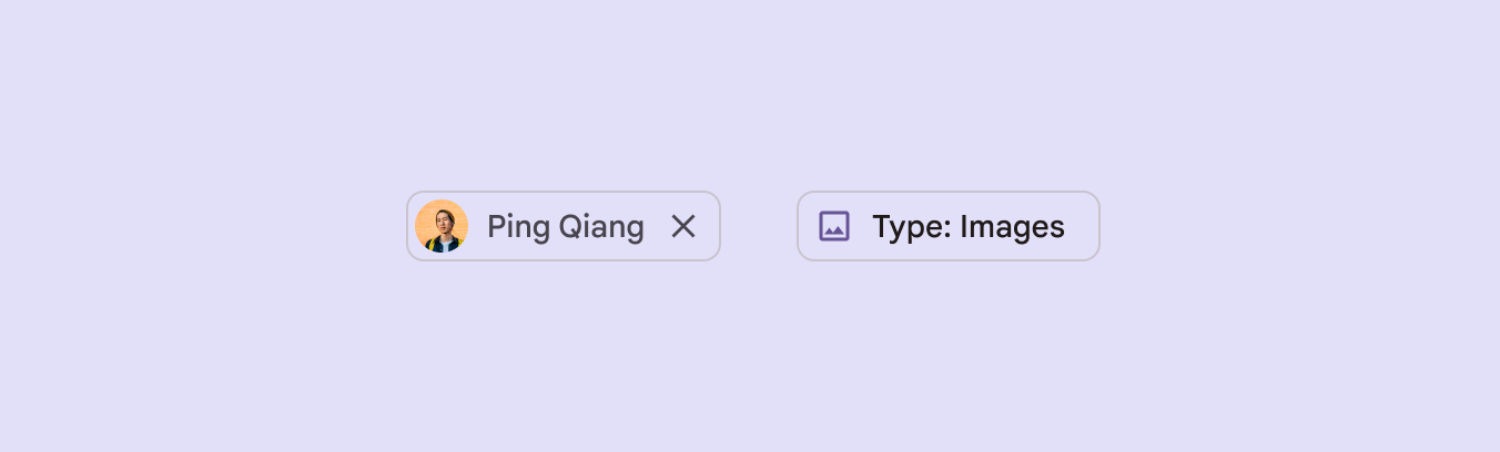 過濾元件是一種簡單的內容過濾工具。使用它可以幫助使用者快速找到想要的內容,比如在瀏覽列表或搜尋結果時。當你點選一個過濾元件時,它會顯示為選中狀態,並在左邊顯示一個勾選圖示。寫過濾元件時,要用簡單的名詞來說明這個類別包含什麼內容。比如用"影象"而不是"排除影象"這樣的說法。