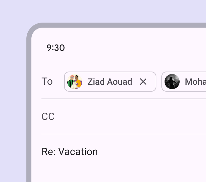 輸入元件可以幫助使用者輸入獨立的資訊,比如在 Gmail 中新增聯絡人郵箱或在搜尋欄中新增篩選條件。當使用者輸入資訊後,系統會自動把文字變成一個小標籤,方便使用者檢視和管理。