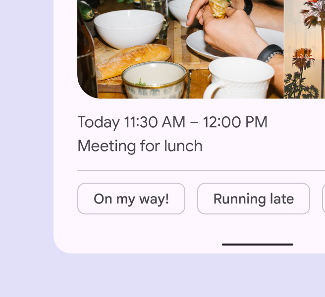 輔助元件能讓使用者快速完成跨應用的操作。比如說,你可以直接從主螢幕建立日曆事件。這些元件就像一個小助手,會根據你當前的使用場景自動顯示合適的選項。