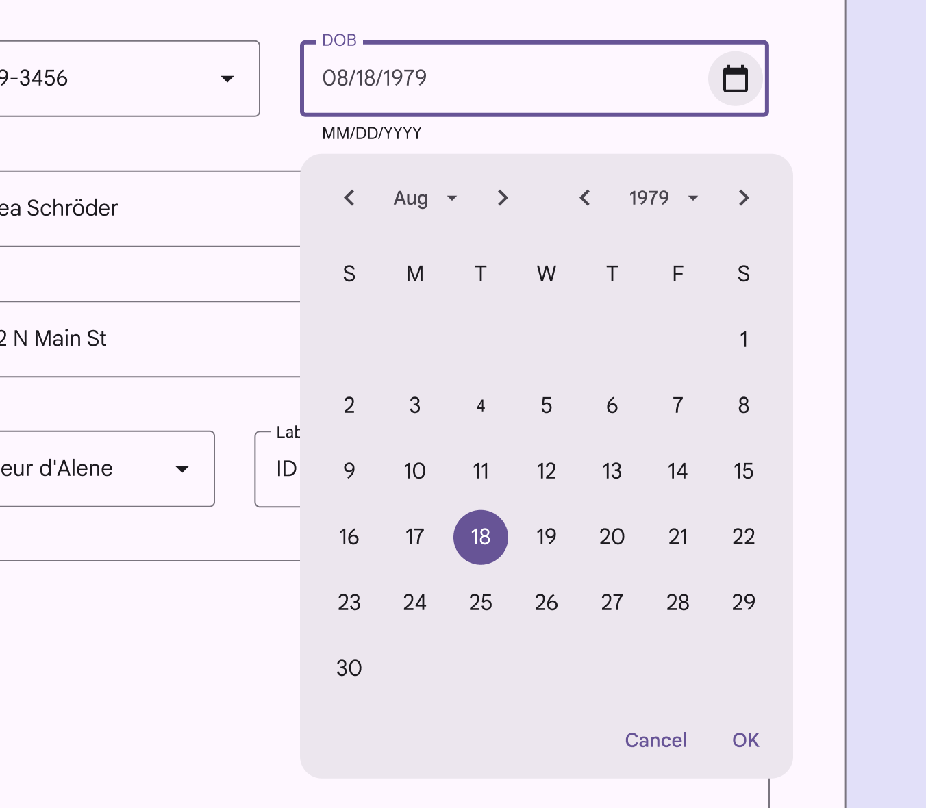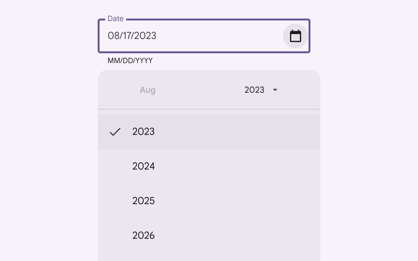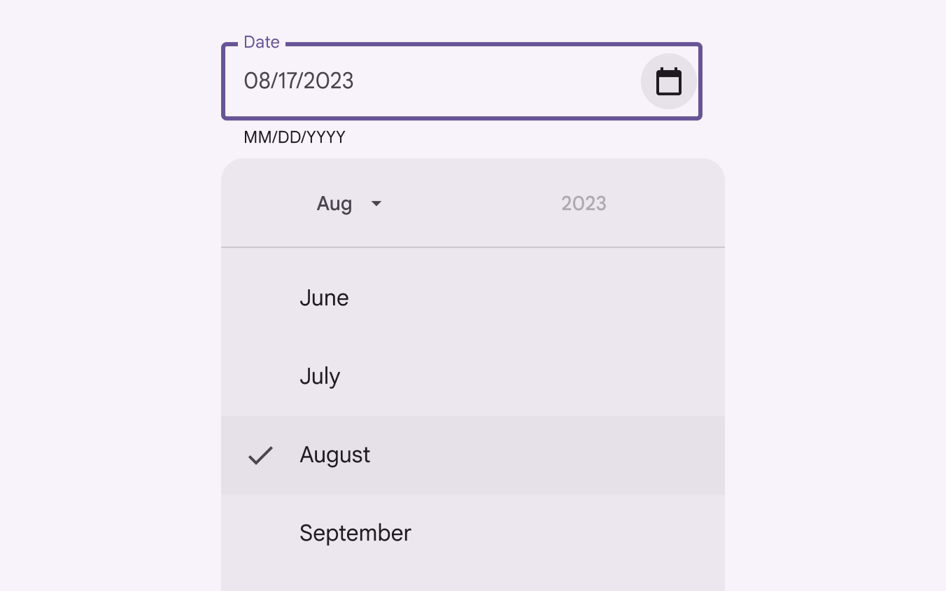 在小螢幕裝置(比如手機)上使用時,最好用全屏日期選擇器。這樣不僅更容易看清楚,而且按鈕也會變得更大,更容易點選。這種選擇器會佔滿整個螢幕。