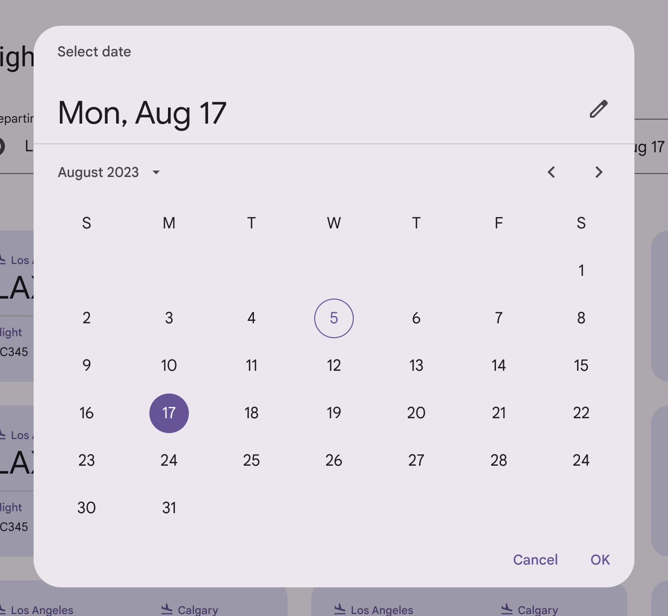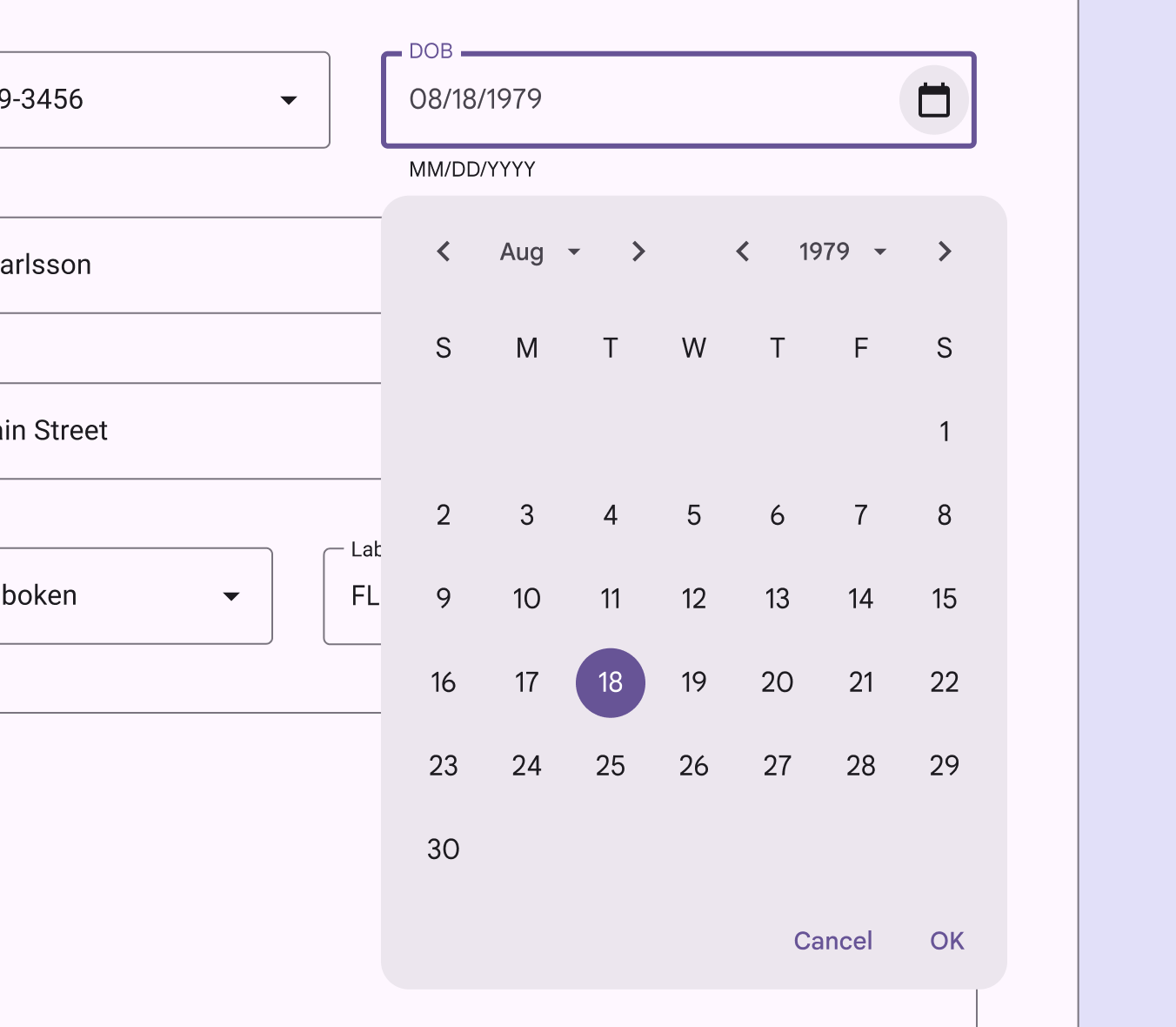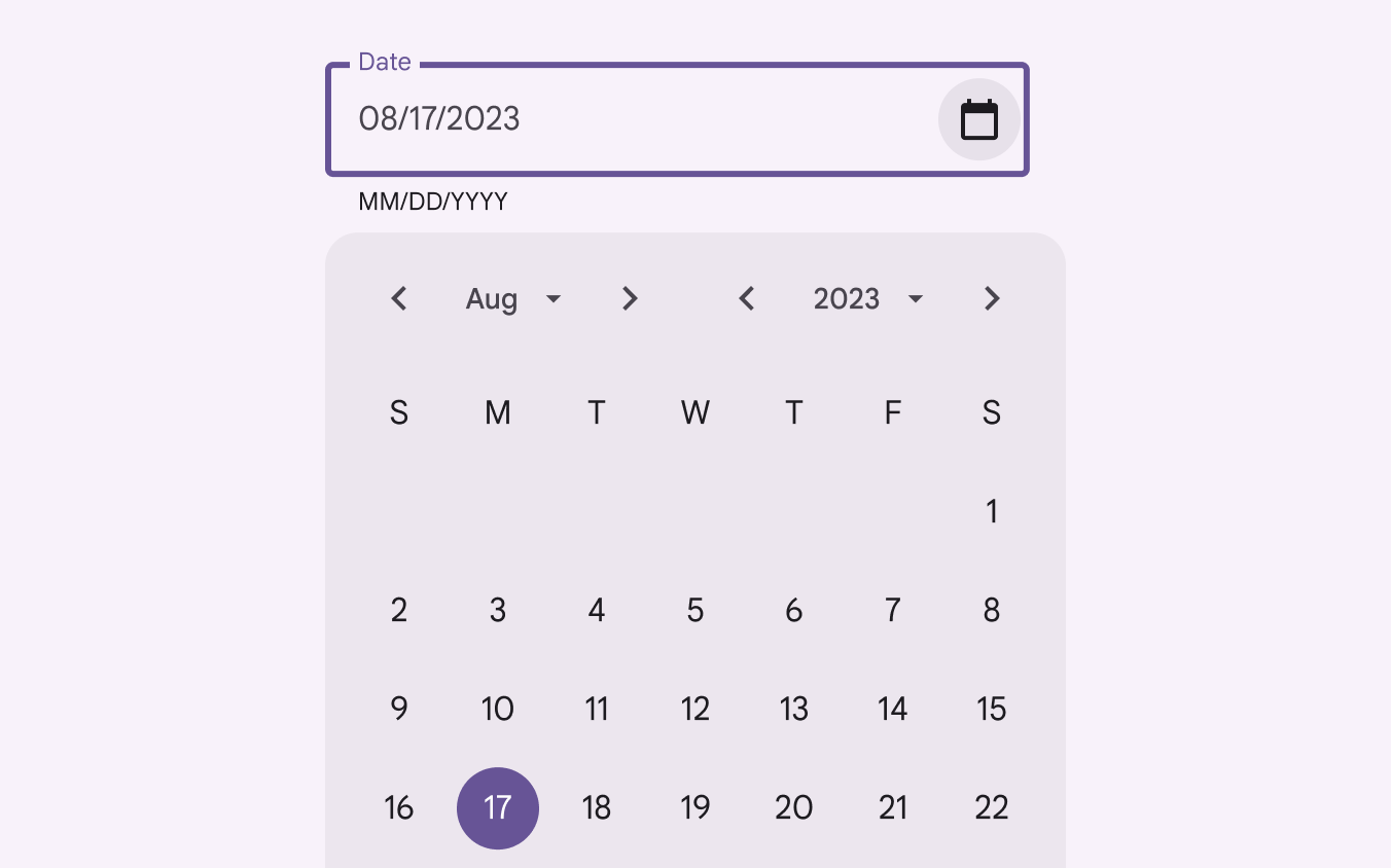 在小螢幕裝置(比如手機)上使用時,最好用全屏日期選擇器。這樣不僅更容易看清楚,而且按鈕也會變得更大,更容易點選。這種選擇器會佔滿整個螢幕。