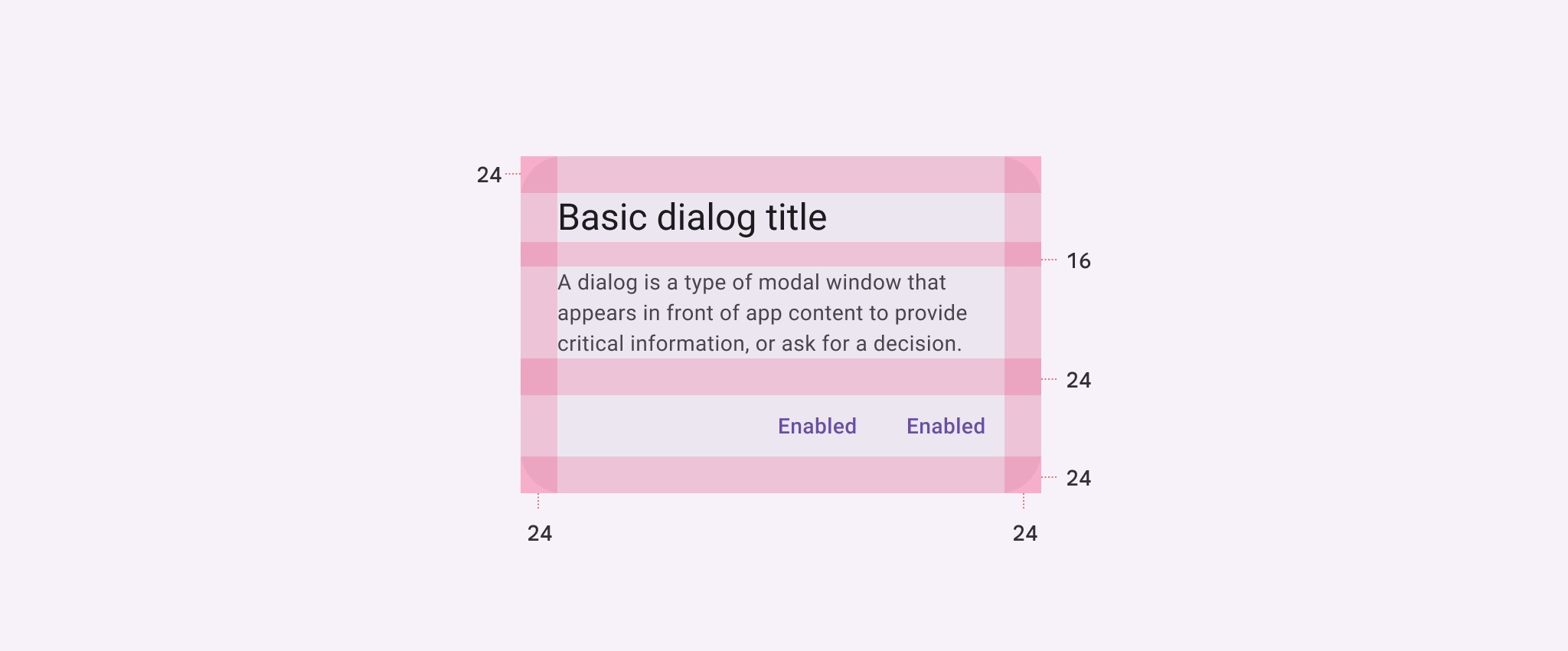 | Padding between body and actions正文與操作之間的間距 | 24dp |