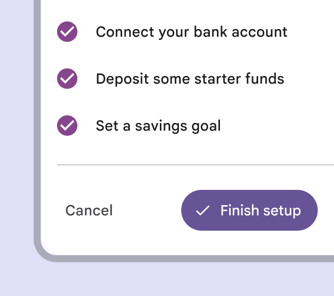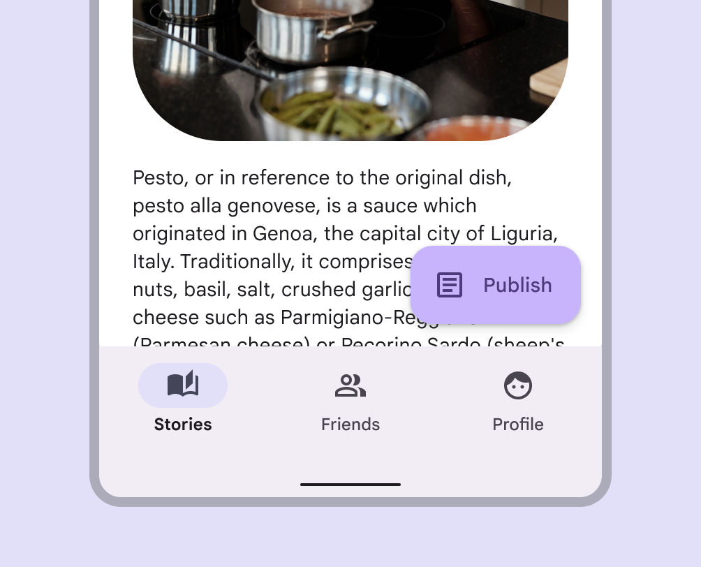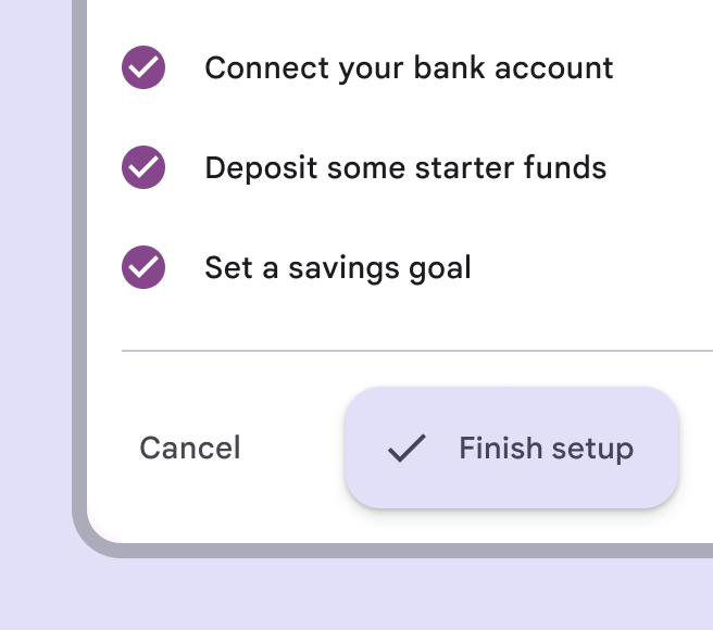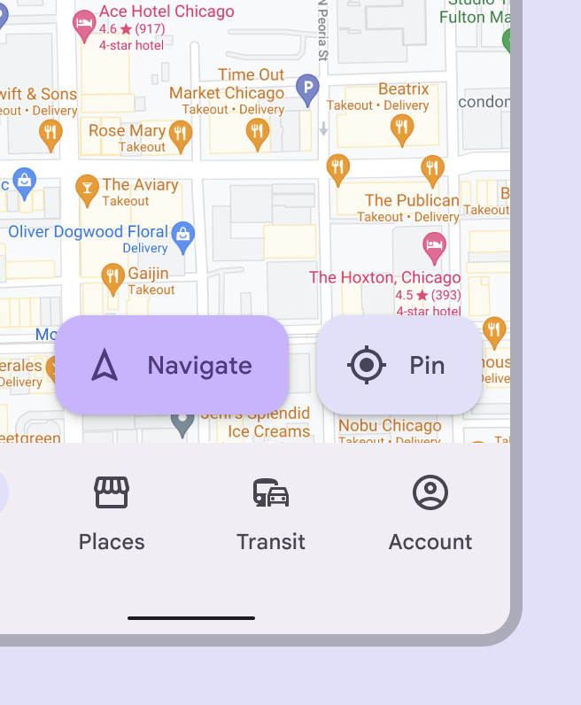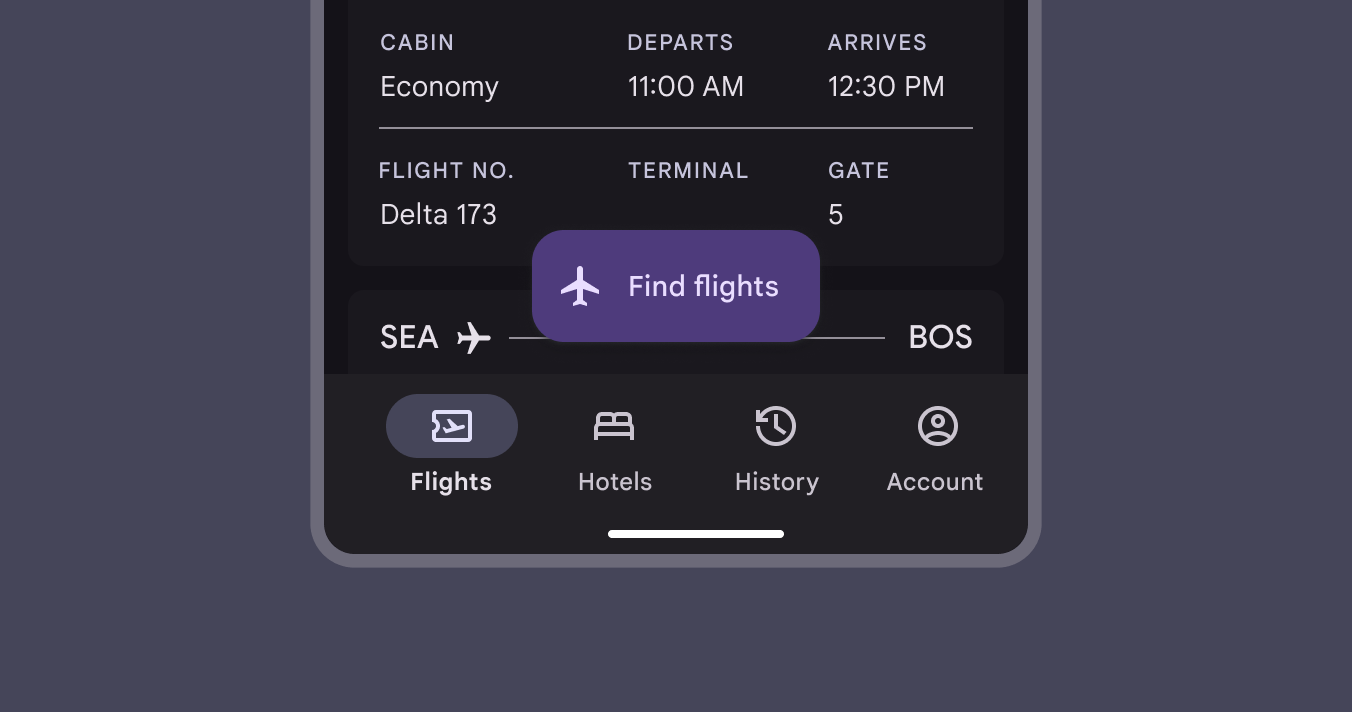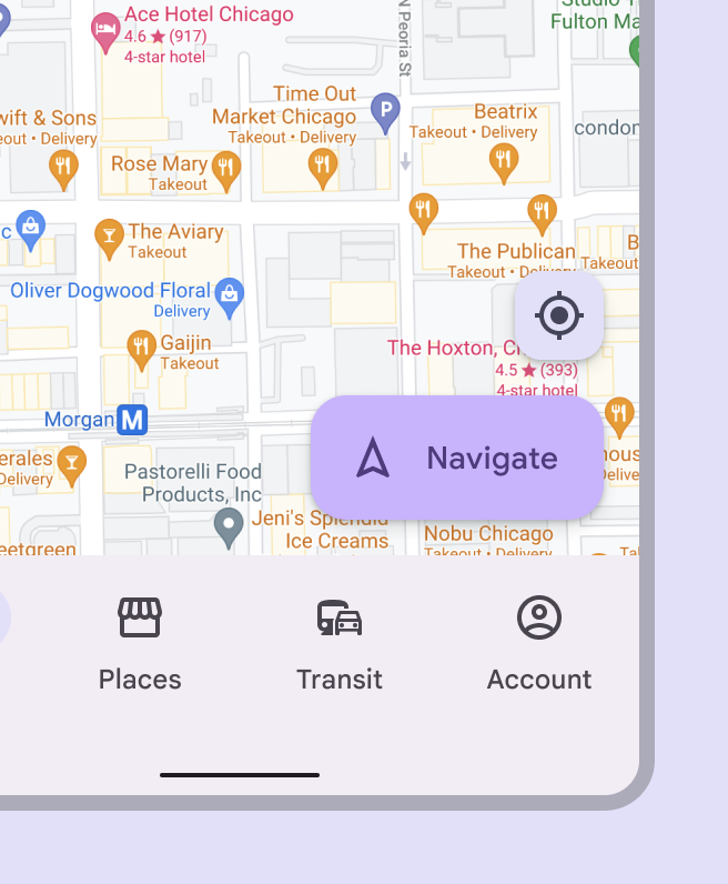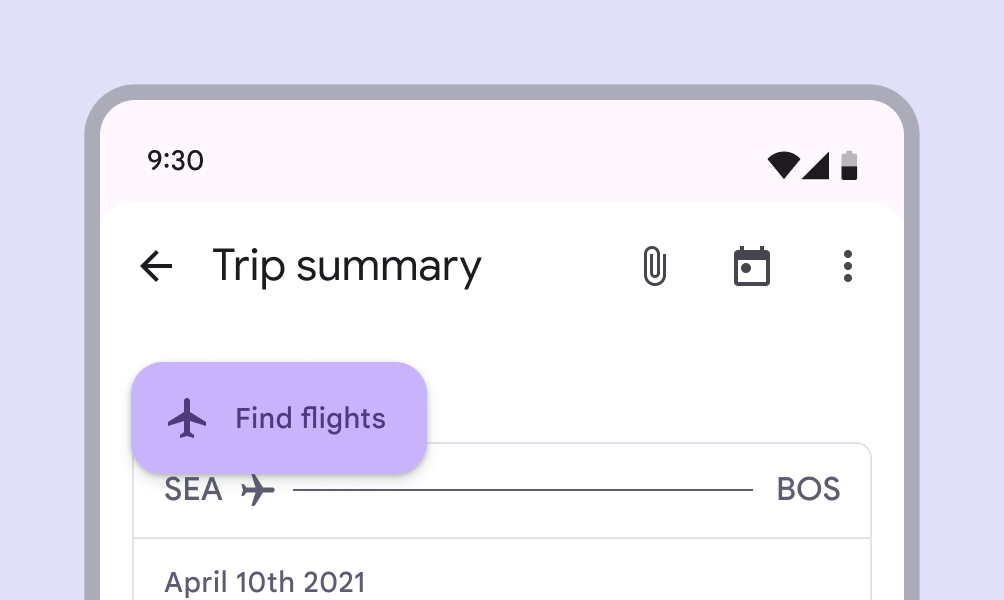 - 例如,在航班預訂或導航操作中,擴充套件 FAB 可提供更清晰的文字指引。