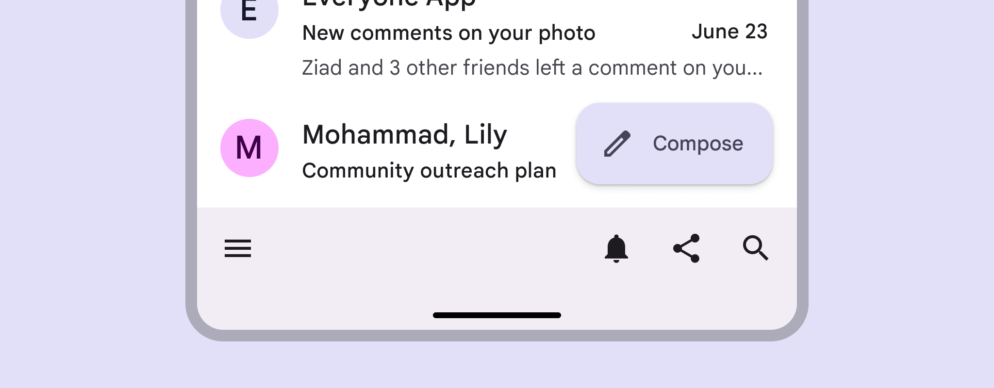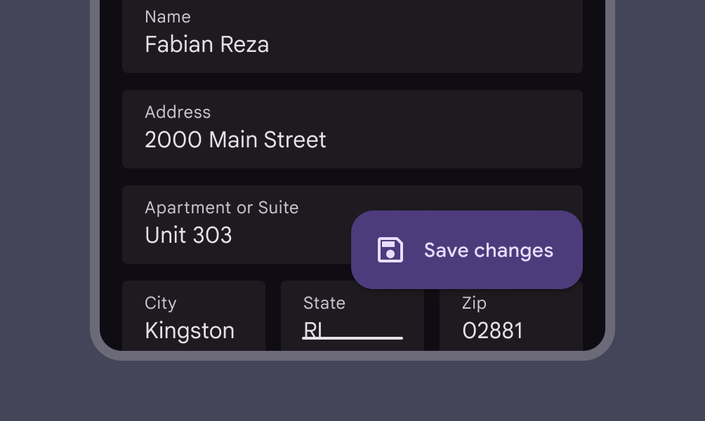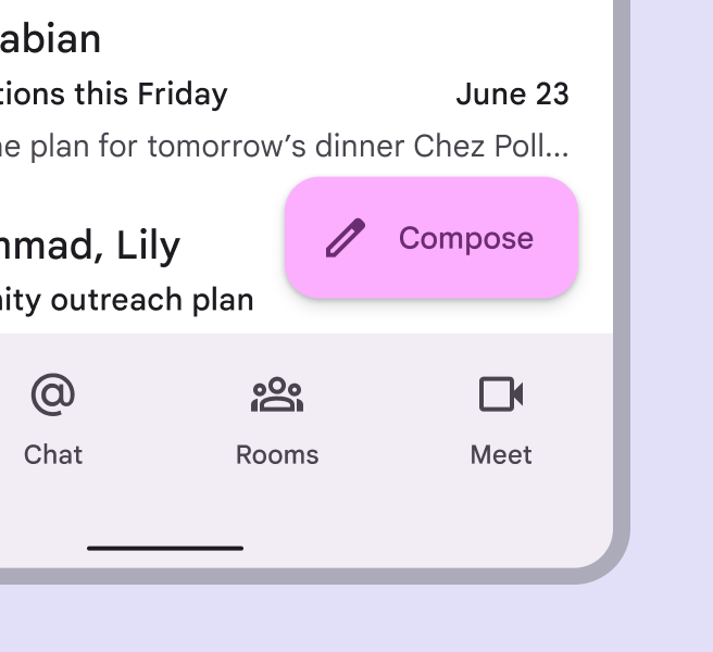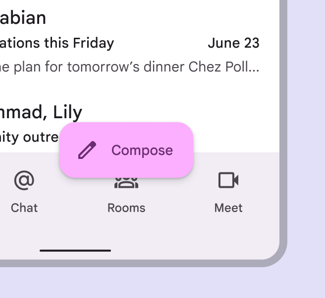 擴充套件 FAB 使用進入和退出過渡動畫出現在螢幕上,確保其呈現流暢且不影響使用者體驗。