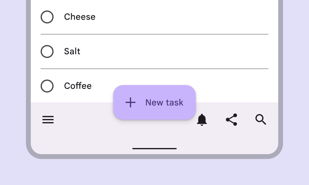 - 不要將擴充套件 FAB 放置在螢幕頂部,這樣可能會讓它看起來像標題欄的一部分。