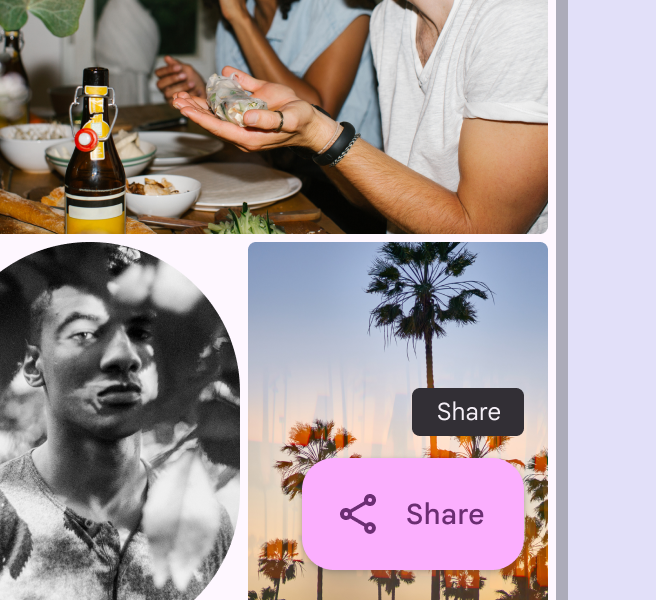 擴充套件 FAB 的文字說明要簡單明瞭,比如"撰寫"或"分享"這樣的詞。在輔助功能(無障礙)模式下,還要加上特殊標籤,這樣可以讓讀屏軟體正確地讀出按鈕的用途。
