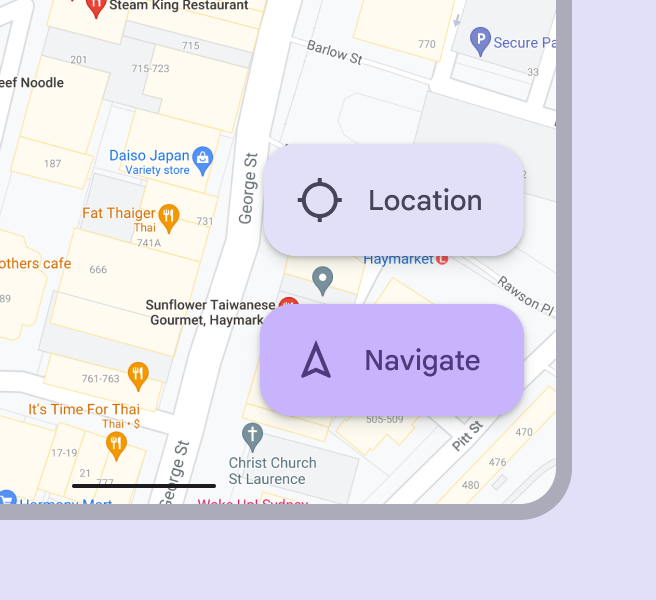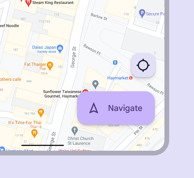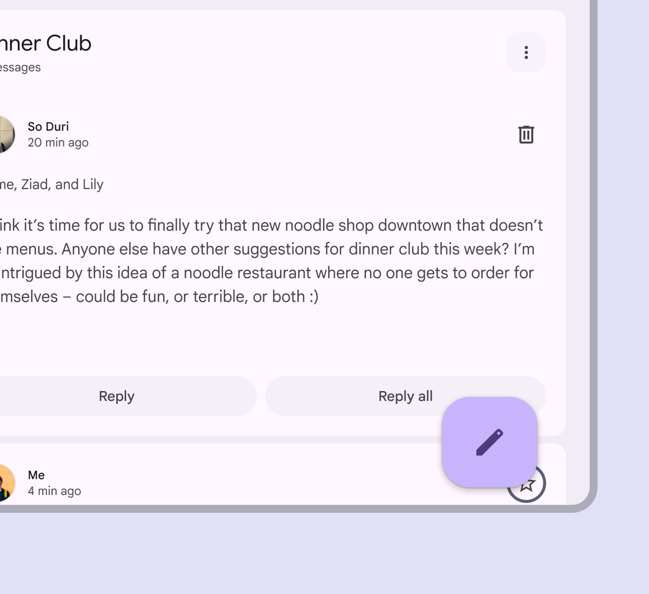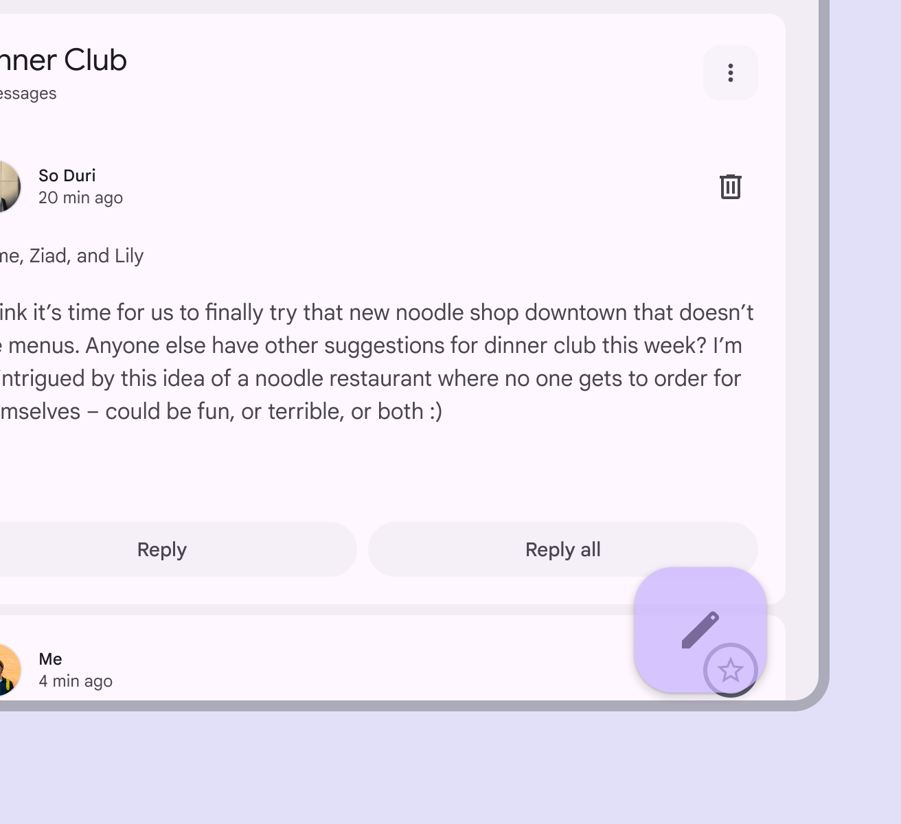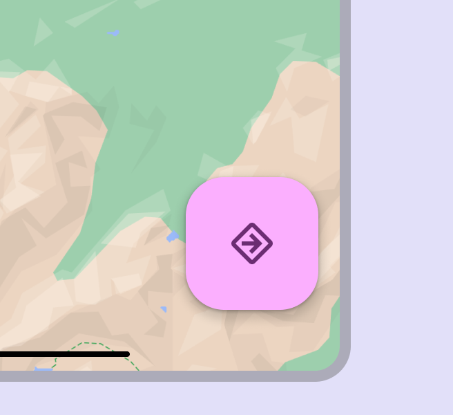 - 當應用程式在更大的螢幕上執行時,FAB 可能需要調整位置,以適應更復雜的 UI 結構。